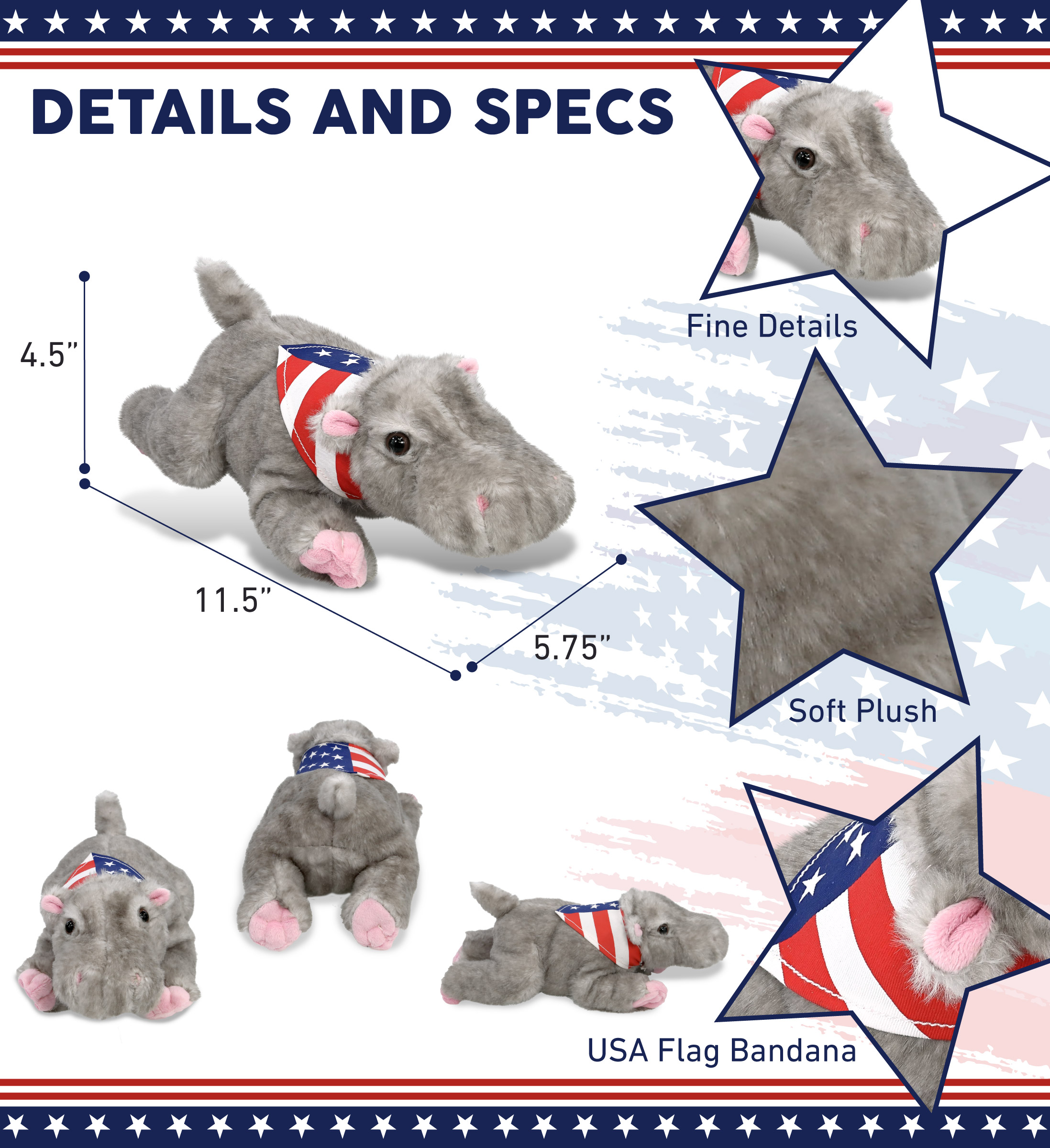 - Includes 1 DolliBu Wild Hippo Toy with USA Flag Bandana Dress Up Set – The stuffed animal hippo arrives with a removable red, white and blue USA flag bandana, making it a standout among stuffed animals with clothes. Turn your classic teddy bear hippo into collectible patriotic stuffed animal perfect for celebrating USA holidays. The hippo stuffed animal measures 11.5Lx5.75Wx4.5H inches and is for kids ages 0 and up.