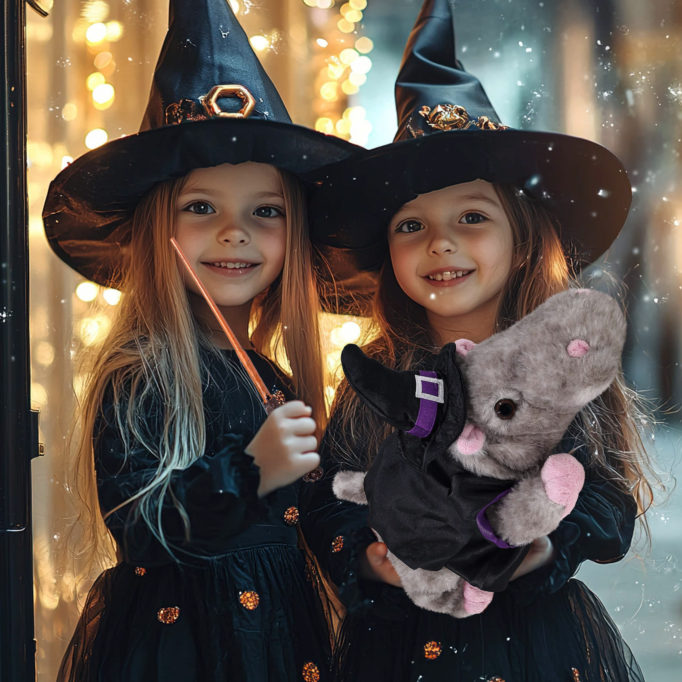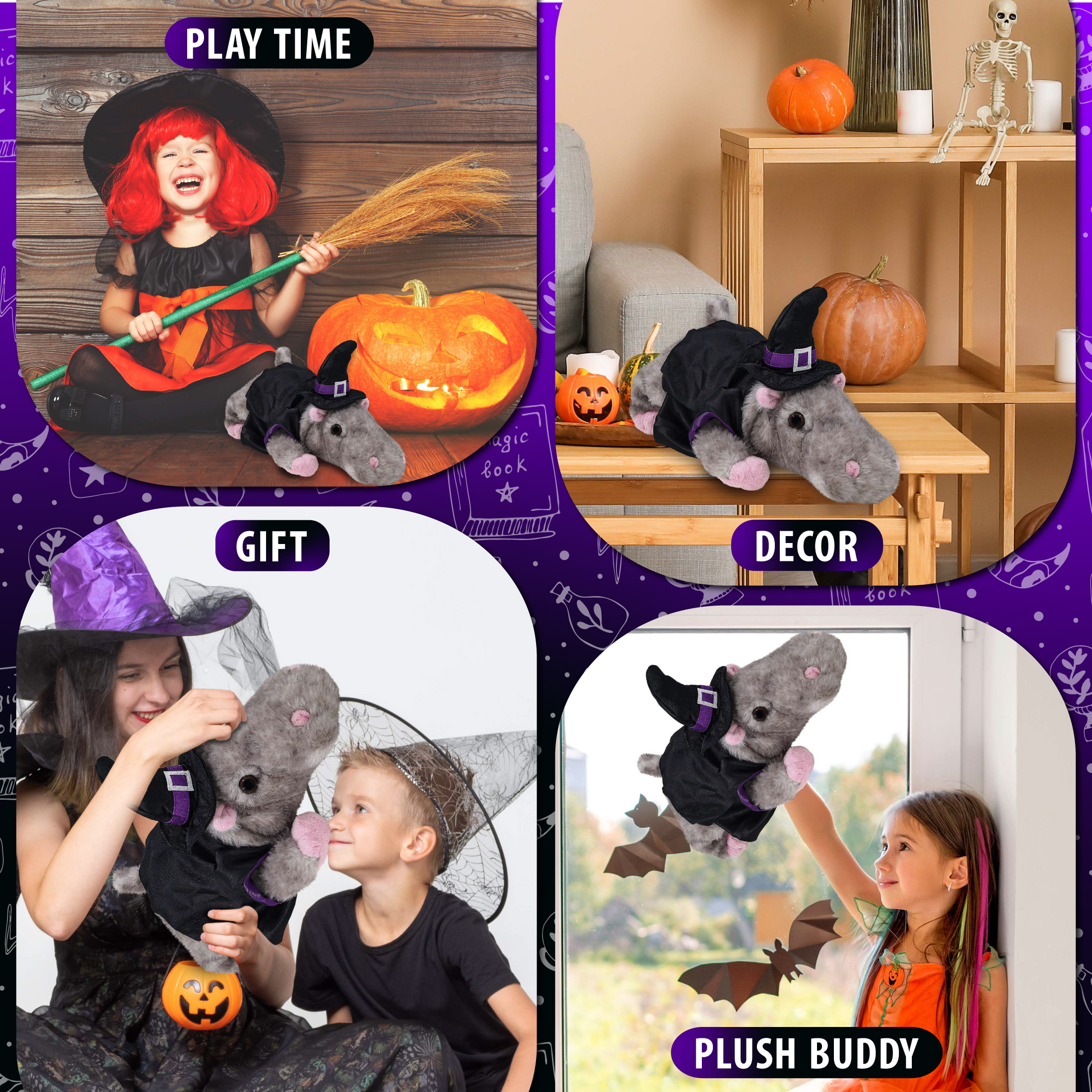 - Made of High-Quality Soft Polyester – The cute Halloween stuffed animal plush hippo with a witch black hat and cloak is made with super-soft, durable, premium-quality polyester materials. The spooky kids toys is designed for everyday hugs and creative dress-up fun, blending witch style with fun animal charm. The witch stuffed animal clothes include a hook and loop tape fastener on the back of the suit for quick and easy dressing.