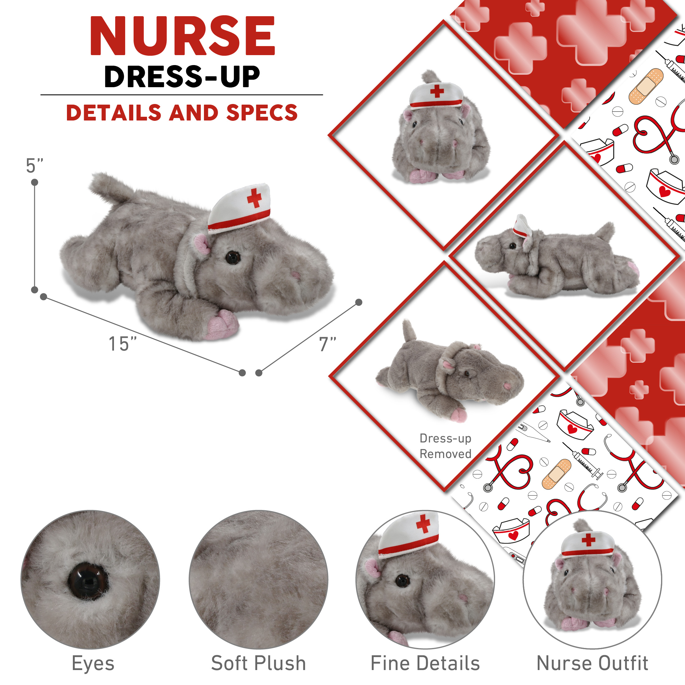 13″ Hippo Nurse – Wild Collection Plush
