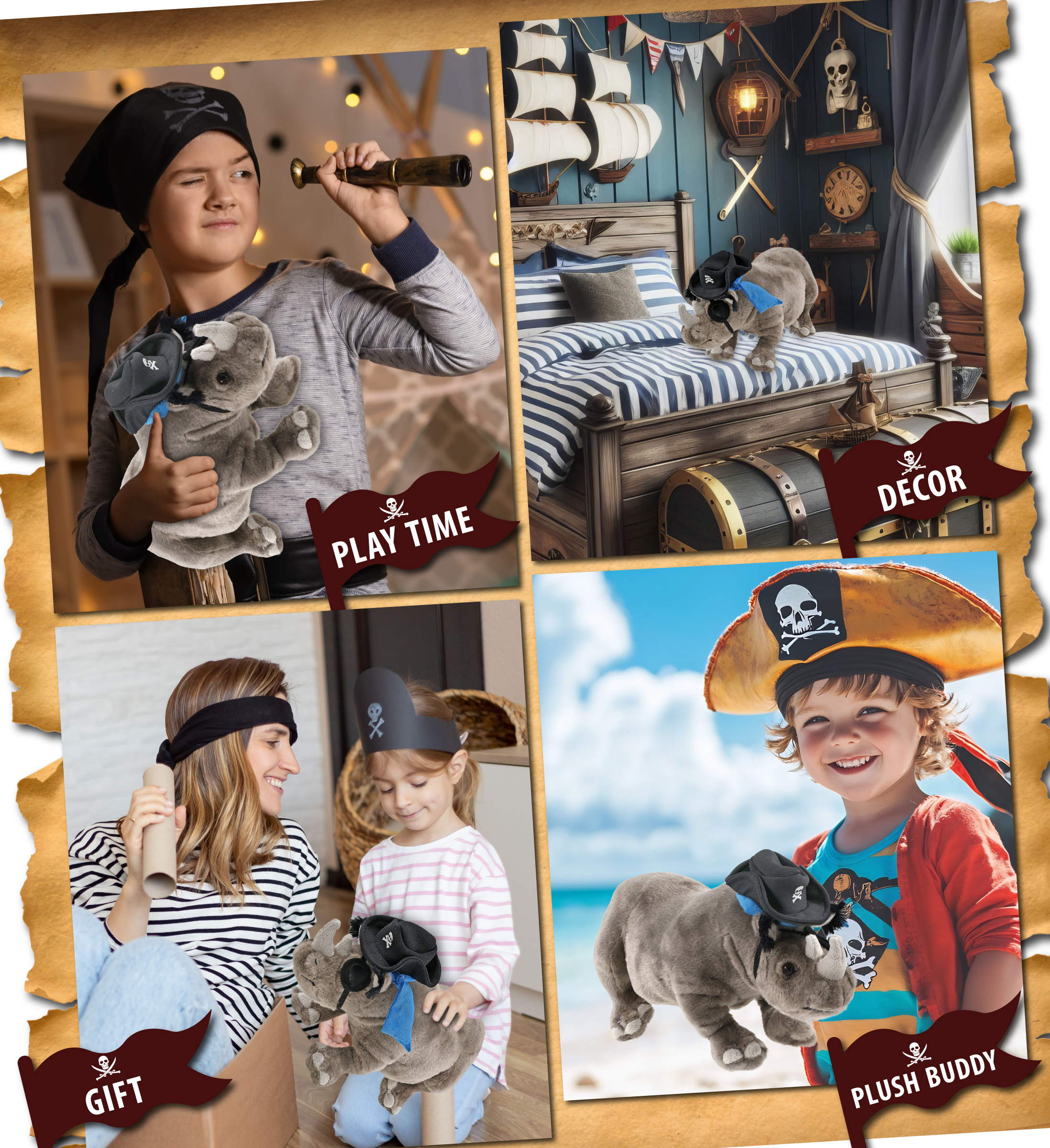 - Perfect Plush Rhino Ocean Stuffed Toy for Plush Pirate Toy Enthusiasts – Whether you’re into stuffed animal accessories or pirate stuffed animal figures, this rhinoceros plush brings a fun twist to your stuffed animal collection. Great gifts for rhino lovers or those who love pirate plush dolls or Halloween themed plush toys. Add it to your Halloween stuffed animals, share accessories with similar stuffed rhino toys.