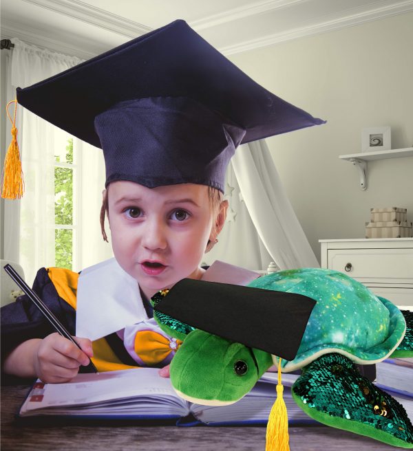 - THE SUPER SOFT SEA TURTLE STUFFED ANIMAL WITH A BLACK GRADUATION HAT COMES WITH A UNIQUE DESIGN YOU WILL LOVE – DolliBu’s Turtle- Space Sequin Graduation Plush is a unique stuffed toy dressed up in graduation attire, a cool stuffed toy to give as a congratulatory gift to your loved one. Pairing gift for your classmates and friends at school. A must-have graduation gift for plush lovers who will be celebrating their graduation day this year!