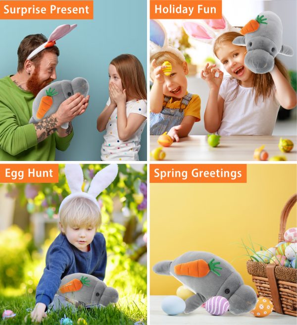 - THE PLUSH MANATEE STUFFED ANIMAL WITH A CARROT COMES WITH A UNIQUE DESIGN YOU WILL LOVE – Super Soft Easter Plush Grey Manatee comes with an orange Carrot Plush attached to the stuffed animal, making it a perfect plush gift to celebrate Easter. DolliBu’s Easter Manatee Plush is a sweet present for anyone who loves and collects cute stuffed toys. A must-have animal plush gift to celebrate and make this year’s Easter a memorable occasion.