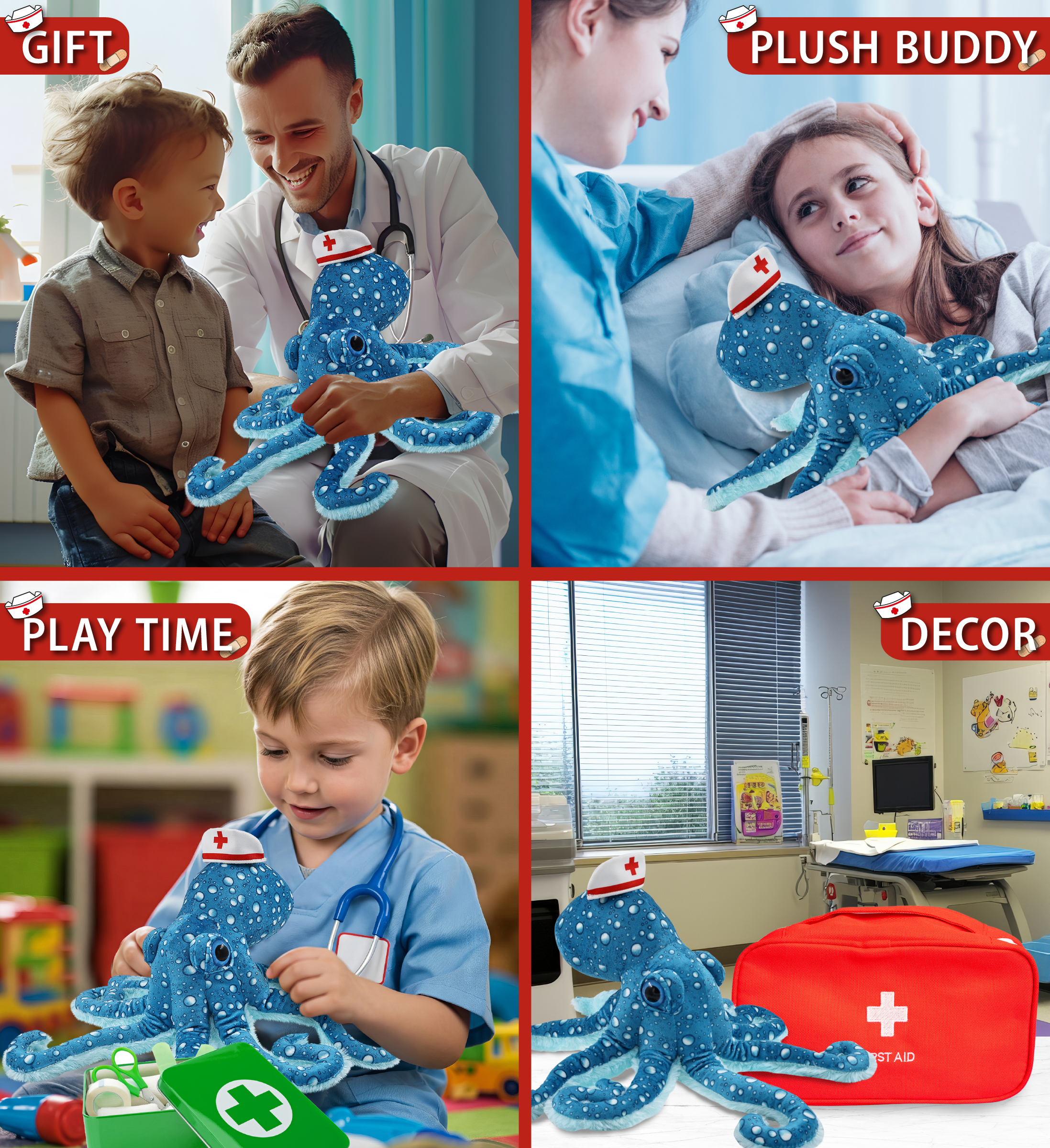 - Perfect Ocean Animal Stuffed Toy Nurse Plush for Those Who Appreciate Health Care Workers – If you’re looking for a gift for nurse graduate, a get well teddy bear for your friend, the stuffed nurse octopus brings a comforting vibe to any occasion. Ideal hospital gifts for children to make them feel safe or as medical toys for kids to inspire them at a young age. The perfect stuffed animal octopus for nurses and for cool storytelling.