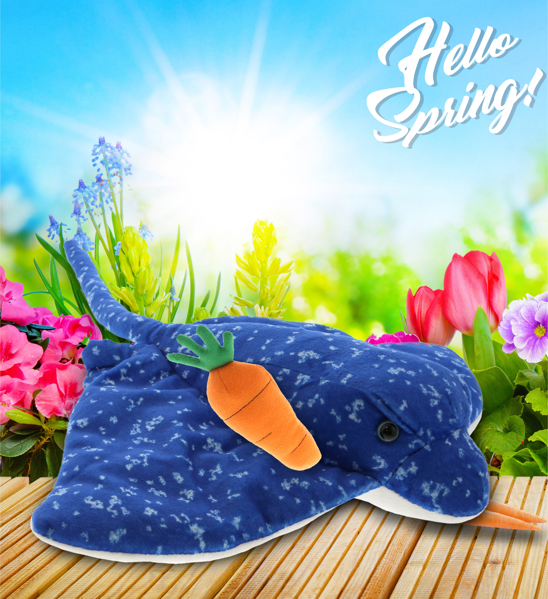 - HIGH-QUALITY TEDDY BEAR WITH CARROT – Super Soft Plush Spotted Blue Ray is a plush toy made of premium-quality polyester and stuffed with soft fillings. Covered with blue fluffy plush. A snuggly ocean life toy crafted with durable materials, designed to deliver a Welcome Spring and Happy Easter message to your loved ones in an adorable way. To maintain the cleanliness of the Ray plush, surface wash with cold water and allow to air dry.