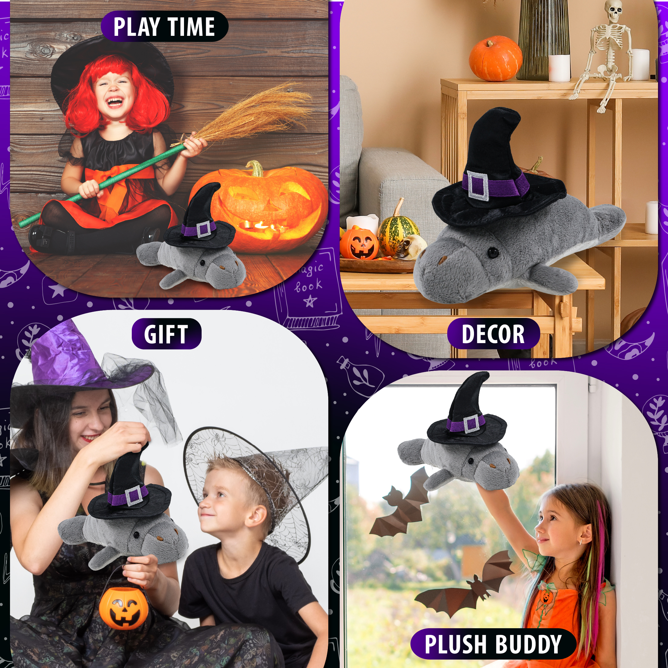 - Perfect for Those Who Love Spooky Stuffed Animals – Everyone who loves spooky stuff and witch toys for girls and boys will be thrilled to get this grey manatee stuffed animal with witch plush clothes hat. Perfect addition to your Halloween decor or as a spooky gift. Ideal Halloween themed gifts for fans of cute plush toys dressed up with hats to dress and undress with a cute Halloween costume. Recommended for ages 3 and up.