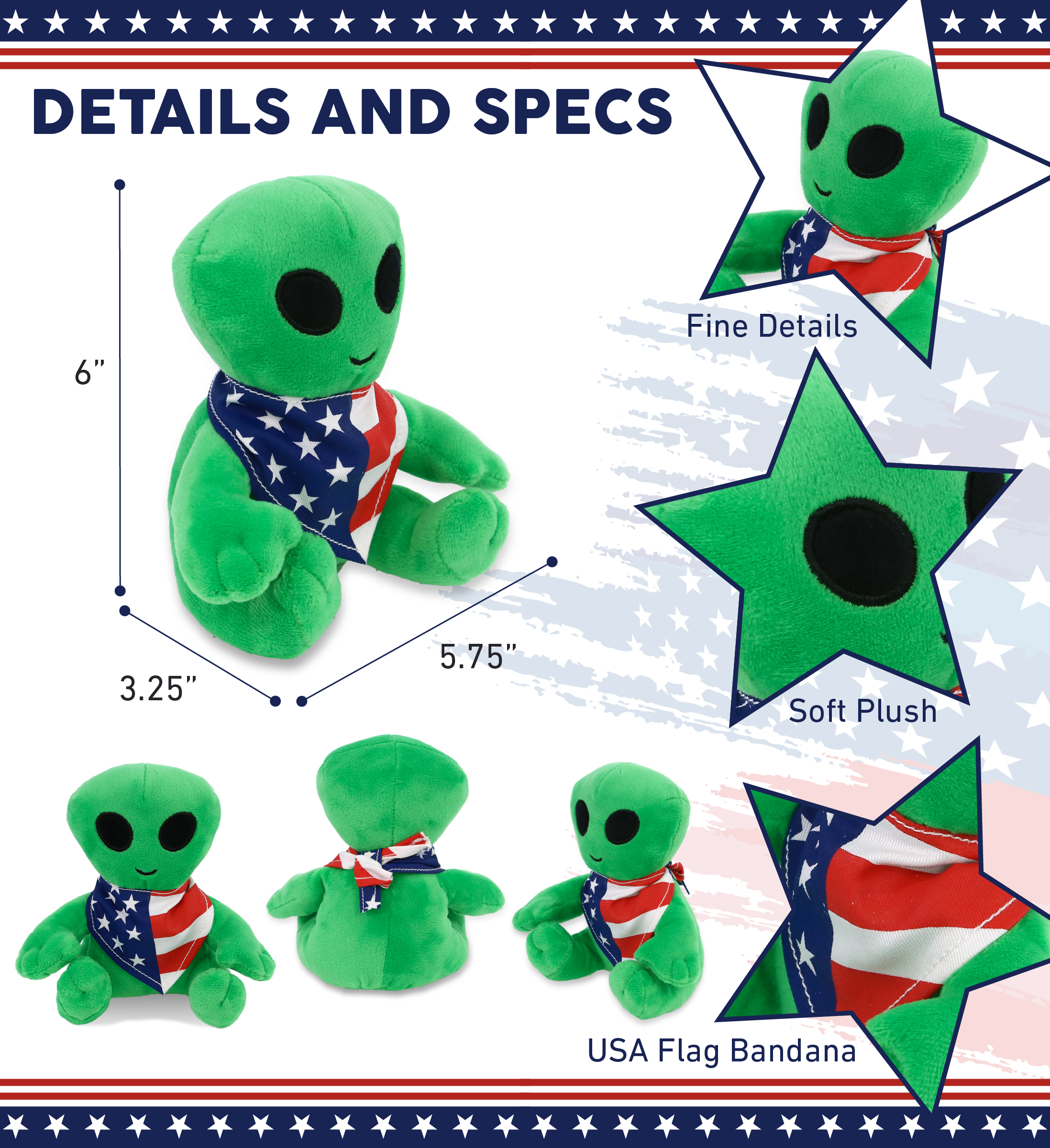 • Features an Alien Cute Plush with USA Flag Bandana – This cute alien baby toy is designed with expressive realistic eyes, a soft green body, and a cool-looking American Flag bandana. The super soft teddy bear is the perfect stuffed alien plush toy for collectors of stuffed plush, fans of toy alien sets, or kids looking for a new soft toy teddy bear cuddle plush to add to their room or playtime adventures.