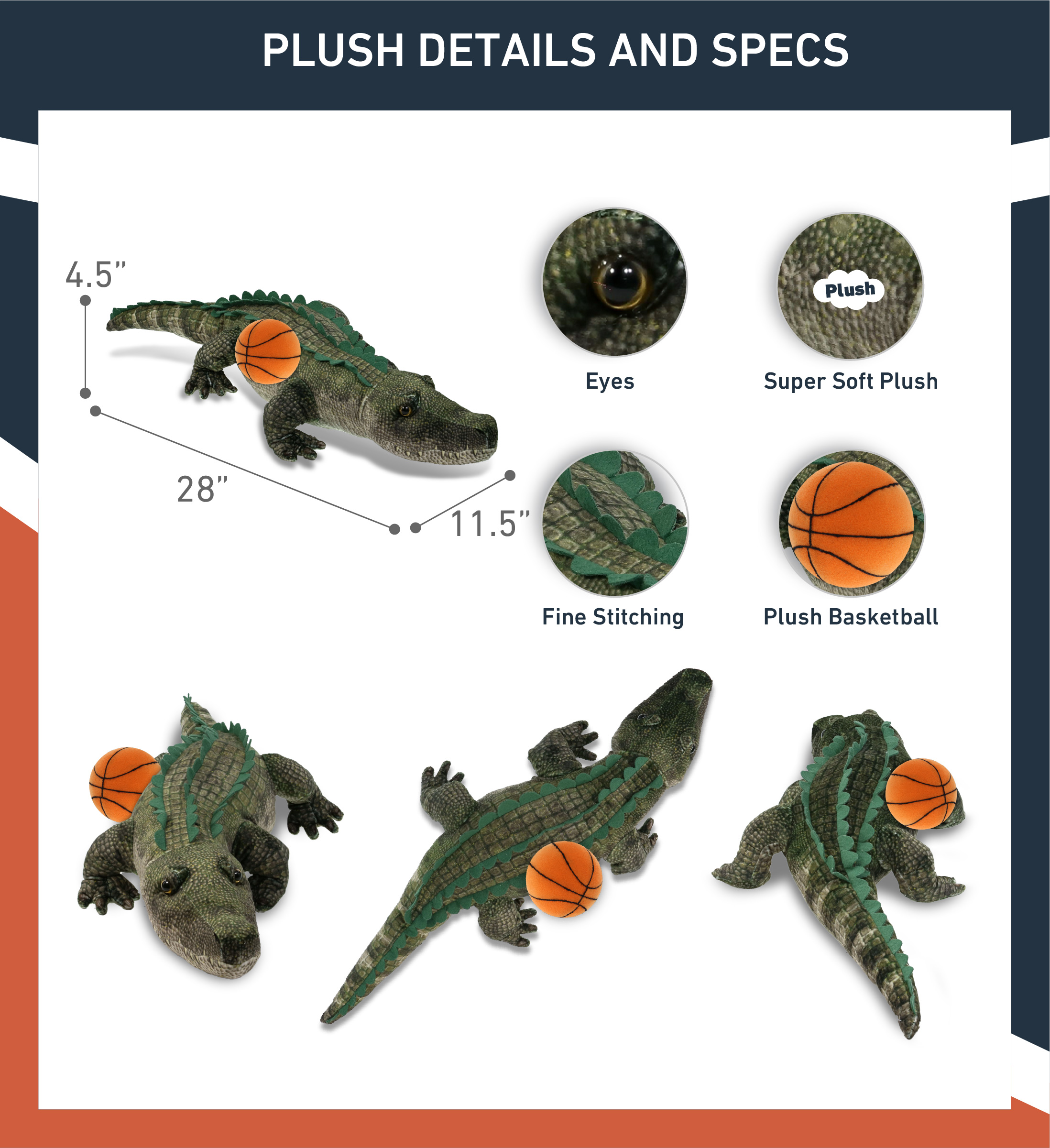 - Included with the Purchase of Adorable Cute Alligator Plush – Includes 1 DolliBu Wild Collection Alligator Plush with a basketball plush, decorated with realistic features of a cute plush animal. The alligator body with a sports gift ball plush makes the plush perfect for cuddles. The alligator plush toy features details like its characteristic snout. The eyes make the critter so charming. The plush toy buddy measures 28Lx11.5Wx4.5H inches.