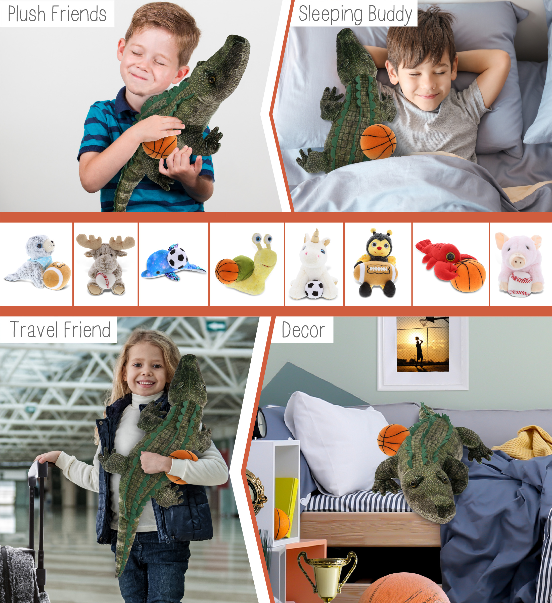 - High-Quality Wild Collection Alligator Plush Stuffed Animal – The machine-sewn alligator toy plush and basketball are made of premium-quality polyester stuffed with soft fluffy polyester fillings. Made with durable and child-friendly features. Cute and snuggly alligator. Cute soft toys designed to be your little one’s best buddies. To maintain fluffy stuffed animals, wash alligator plush toys with cold soapy water and allow it to air dry.