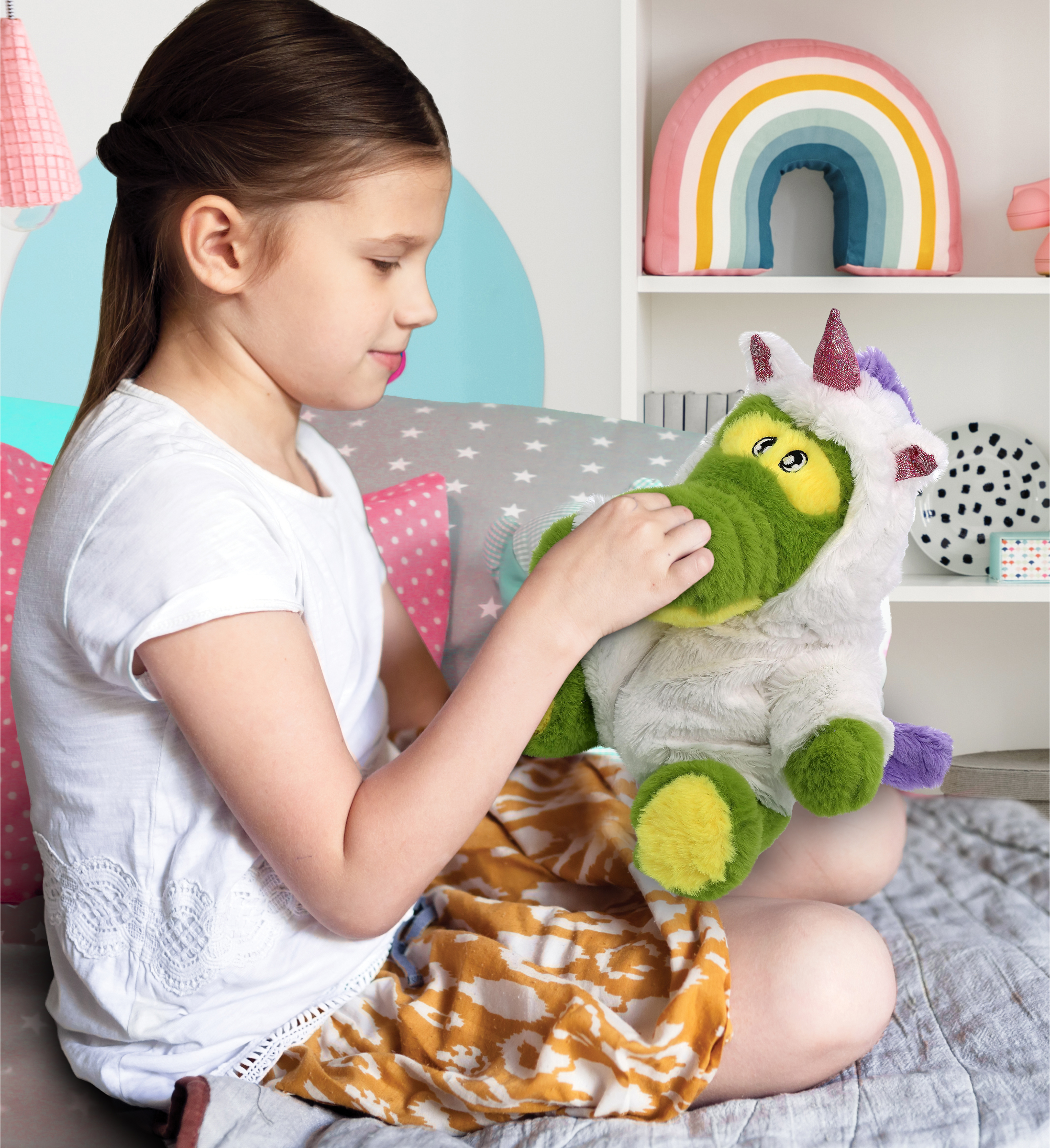 - The Alligator Unicorn Stuffed Animal Is for Those Who Love Fluffy Stuffed Animals – Be on theme with your animal fantasy-themed bedroom with the Eco-Friendly Alligator Unicorn plush displayed in your bedroom. Fluffy stuffed unicorn for girls or boys to make their imaginary playtime exciting as they pretend play with stuffed animals in magical adventures. The alligator is great to add to your little kid’s collection of unicorn-stuffed animals!