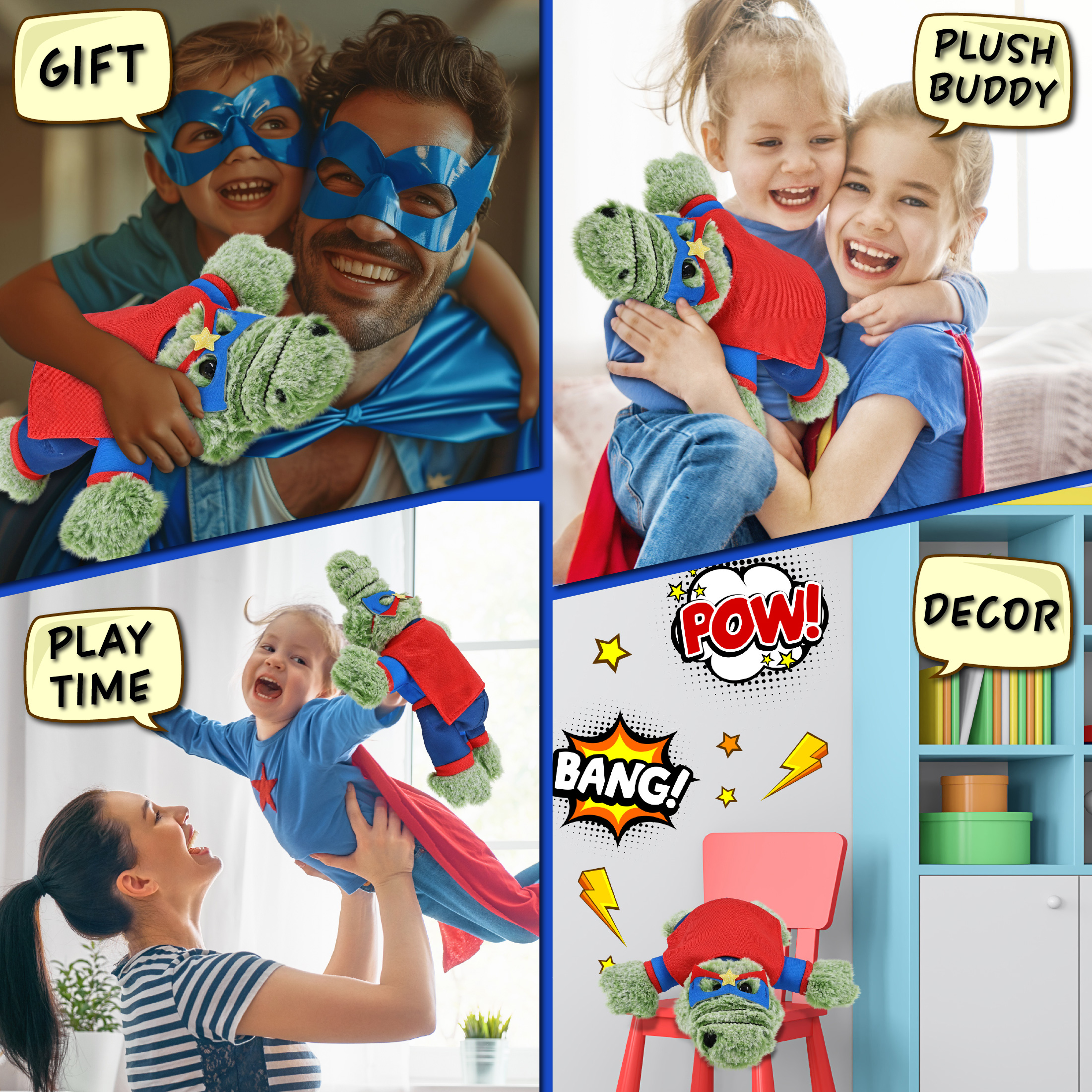 - Perfect for Everyone Who Loves Superheroes – Everyone who loves customizable stuffed animal toys will be thrilled to have a super hero stuffed alligator. Whether it’s a cute stuffed animal gift or a superhero teddy for a super hero themed room, this plush makes a thoughtful surprise. Ideal for birthdays, Halloween, or everyday fun. Perfect to bring along on pretend-play save-the-day adventures.