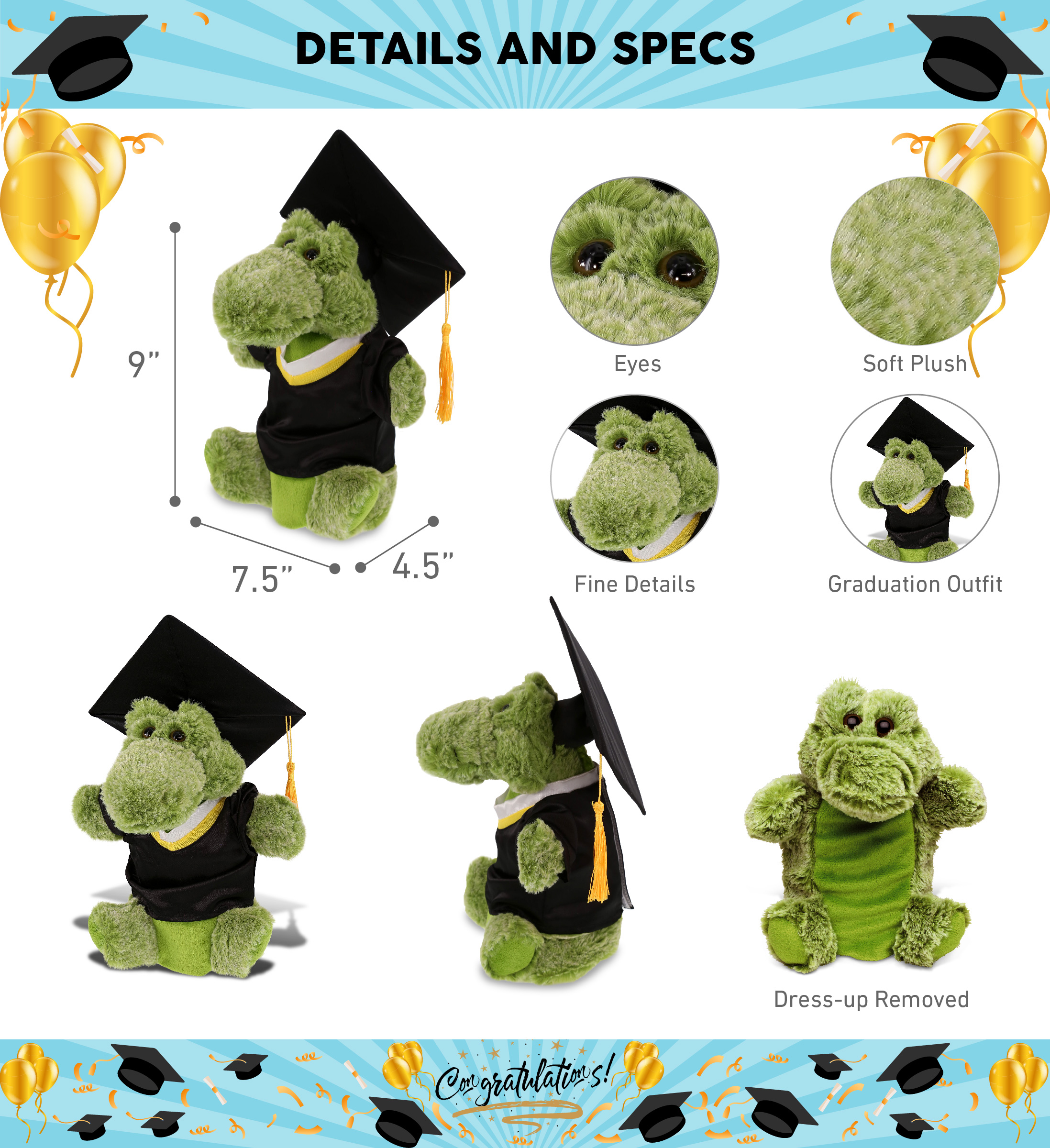 - THE ALLIGATOR HAND PUPPET STUFFED ANIMAL WITH A BLACK GRADUATION GOWN AND HAT COMES WITH A UNIQUE DESIGN YOU WILL LOVE – Alligator Graduation Plush is a unique stuffed toy dressed up in graduation attire, a cool stuffed toy to give as a congratulatory gift to your loved one. Perfect parting gift for your classmates and friends at school. A must-have graduation gift for plush lovers who will be celebrating their graduation day this year!