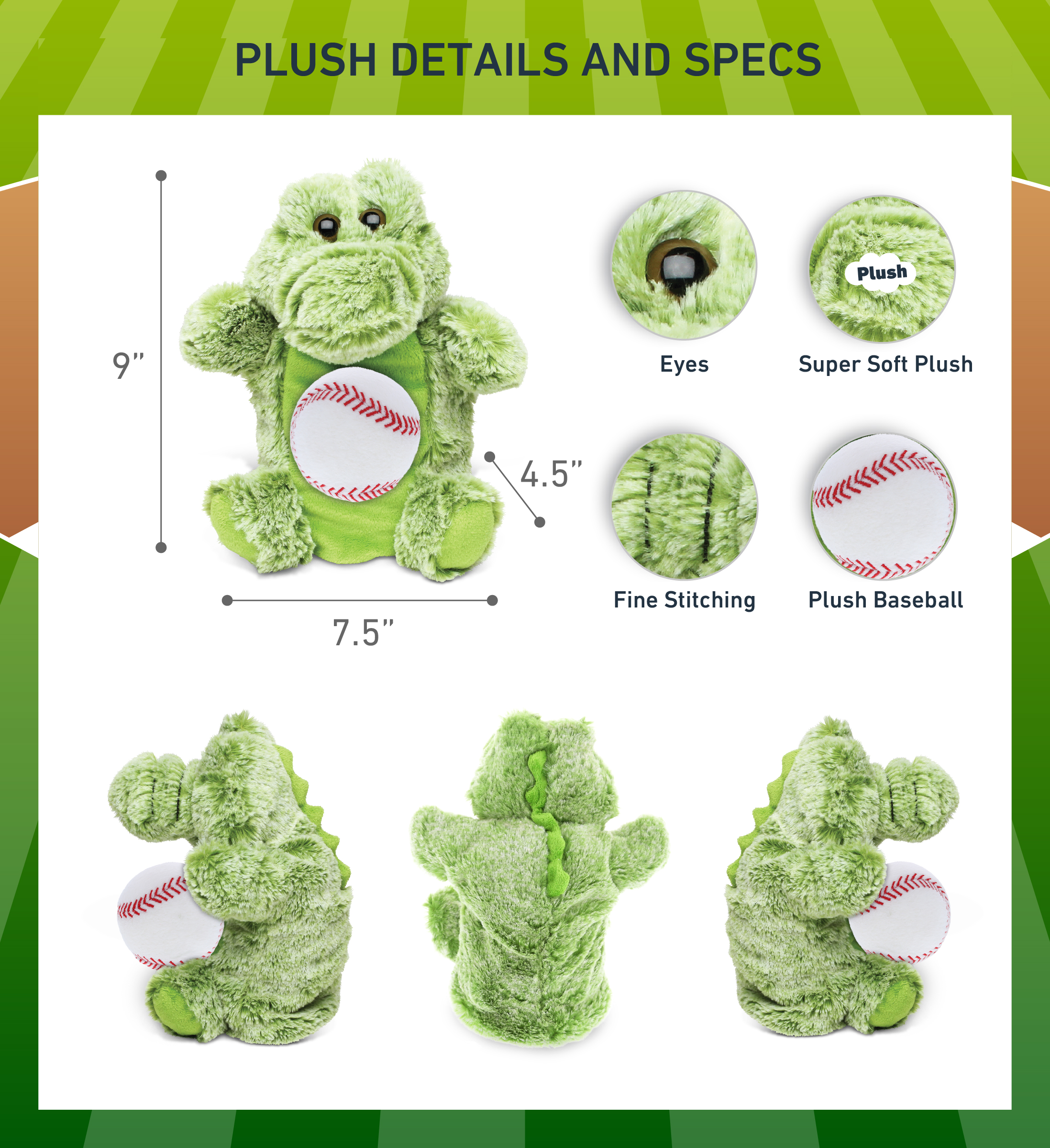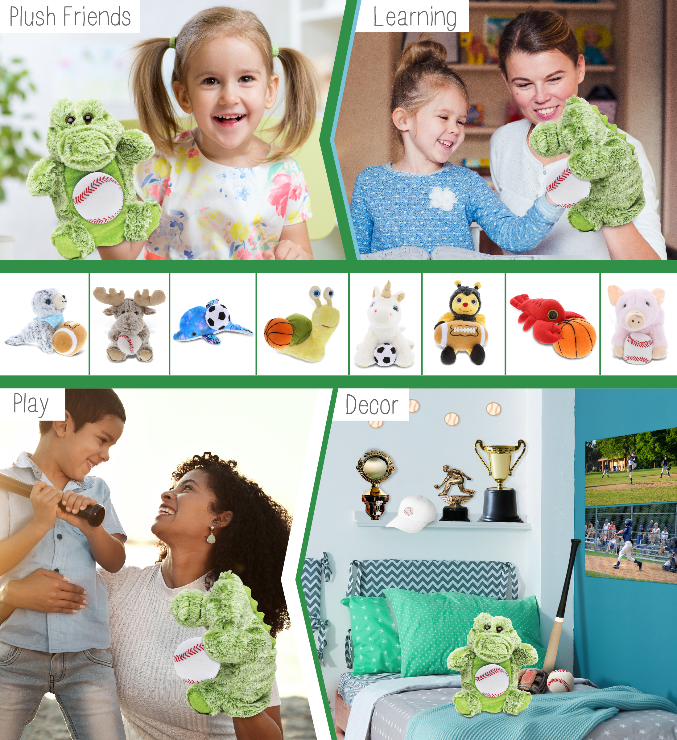- Ideal Use for the Kids Baseball Plush and Alligator Puppet – The Alligator baseball stuffed animal puppet makes a great addition to your kids baseball stuff for boys collection. Great gifts for boys who love sports and plush dolls. If you’re looking for the perfect baseball gift ideas for kids, this stuffed puppet with baseball plush is the perfect choice. It’s the perfect stuffed animal baseball birthday gifts to give on any special occasion.