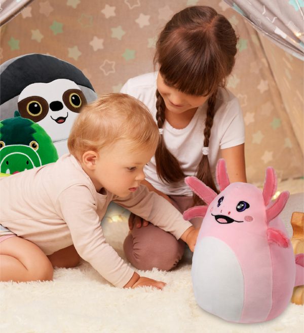- THE CUTE AXOLOTL SOFT PLUSH COMES WITH UNIQUE DESIGN YOU WILL LOVE – Embrace the whimsical charm of the Snug-Mooshies Axolotl plush animal designed with soft, squishy-like texture and smiling embroidered face. The perfect boys and girls plush stuffed animal for cuddling, decorating, and adding a touch of cuteness to any space. The super soft toy Axolotl brings joy to kids, teens and adults, offering a fun sensory soft plush comforting experience.