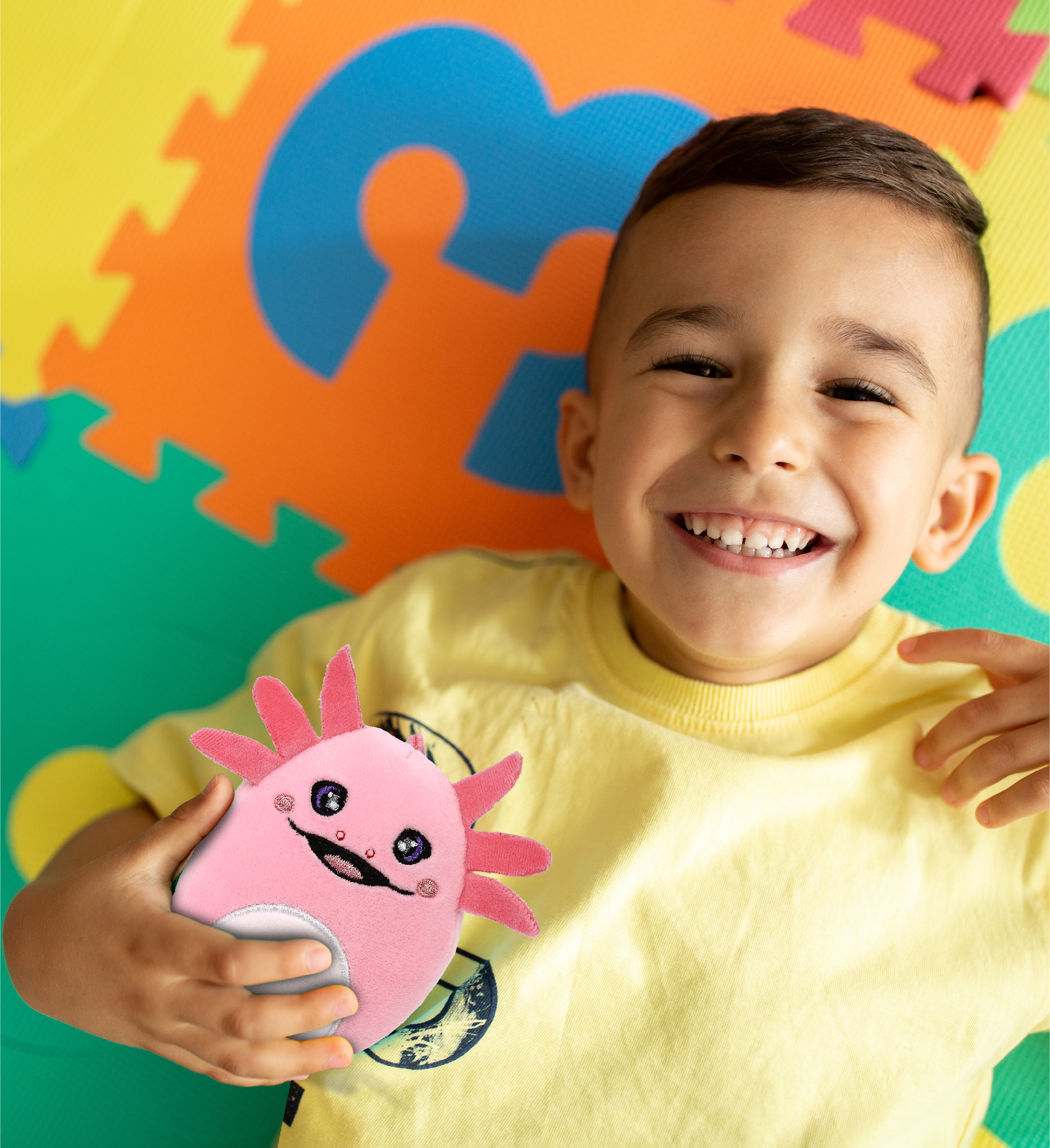 - THE CUTE SOFT AXOLOTL STUFFED ANIMAL COMES WITH UNIQUE DESIGN YOU WILL LOVE – Embrace the whimsical charm of this Snug-Mooshies Axolotl stuffed animal plush toy, designed with soft and squishy-like texture and a smiling embroidered face. The perfect boys and girls plush stuffed animal for cuddling and adding a cute touch to any space. Axolotl soft toy bring joy to kids, teens and adults, offering a sensory soft plush comforting experience.