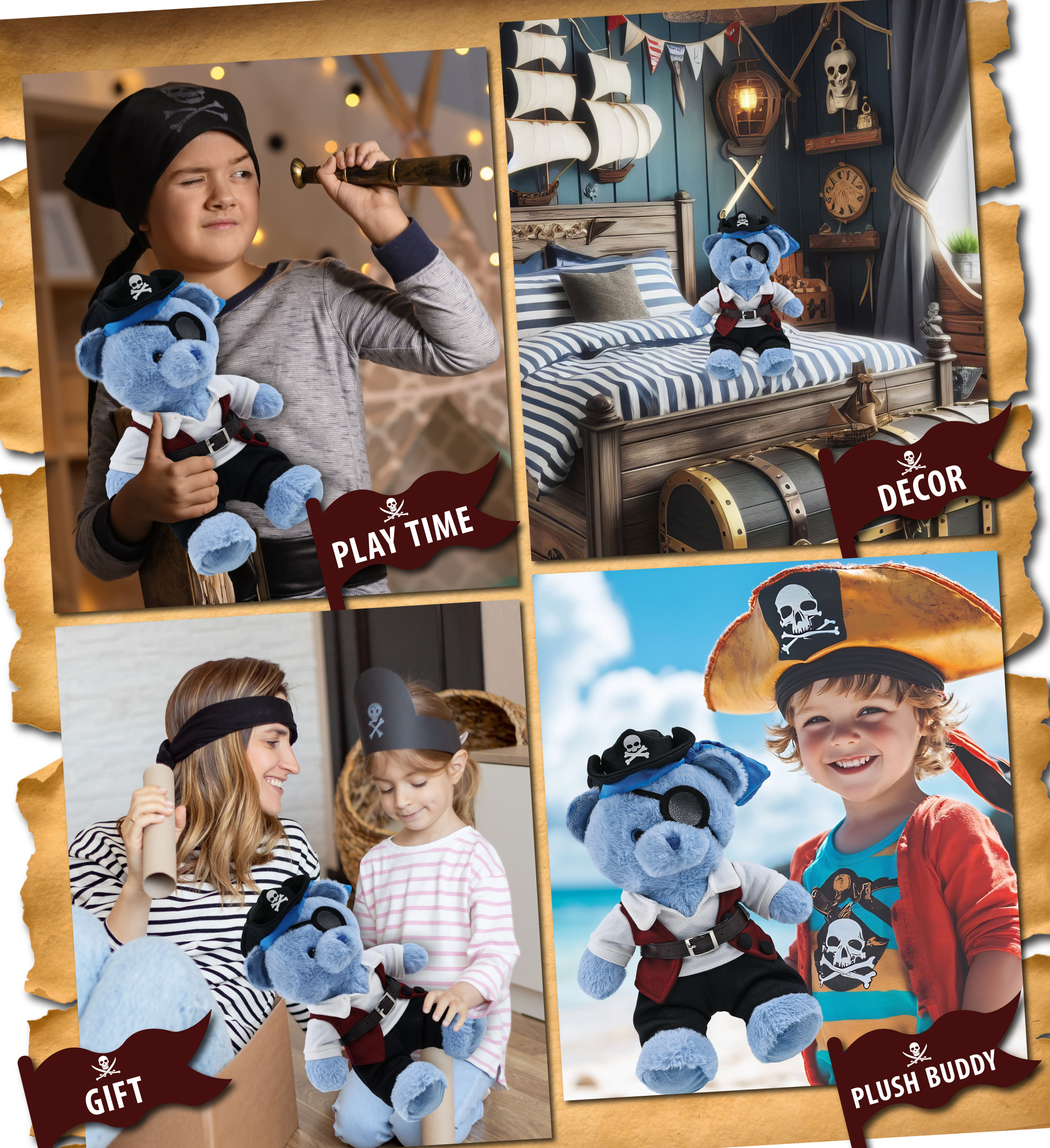 - Perfect bear Stuffed Toy for Pirate Adventure Lovers – Whether you’re into stuffed animal accessories or teddy bear clothes for stuffed animal toys, this plush brings a twist to your pirate toy collection. Great gifts for pirate lovers or those who love pirates and the sea. The clothes can be used as cute Halloween costume accessories for plush toys. Add it to your Halloween stuffed animals; share accessories with similar stuffed bears.