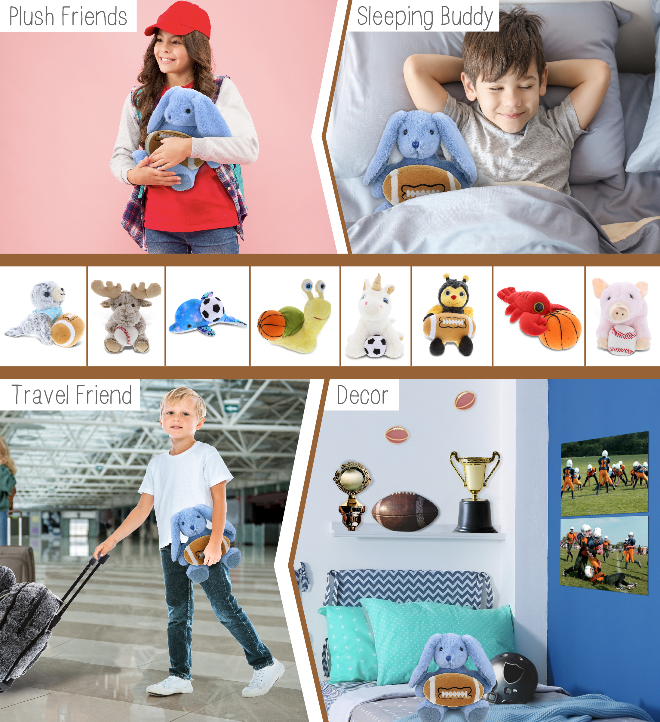 - PERSONALIZATION, CUSTOMIZATION, AND ADD-ON OPTIONS – Super Soft Sports Stuffed Animal Baby Blue Rabbit comes customized with a Football Plush. You can personalize it with the name of your loved one imprinted on the item. You also have the option to add some or all of the cool add-ons to make your gift extra special: 1) Gift Bag; 2) Tissue Paper; 3) Greeting Card.