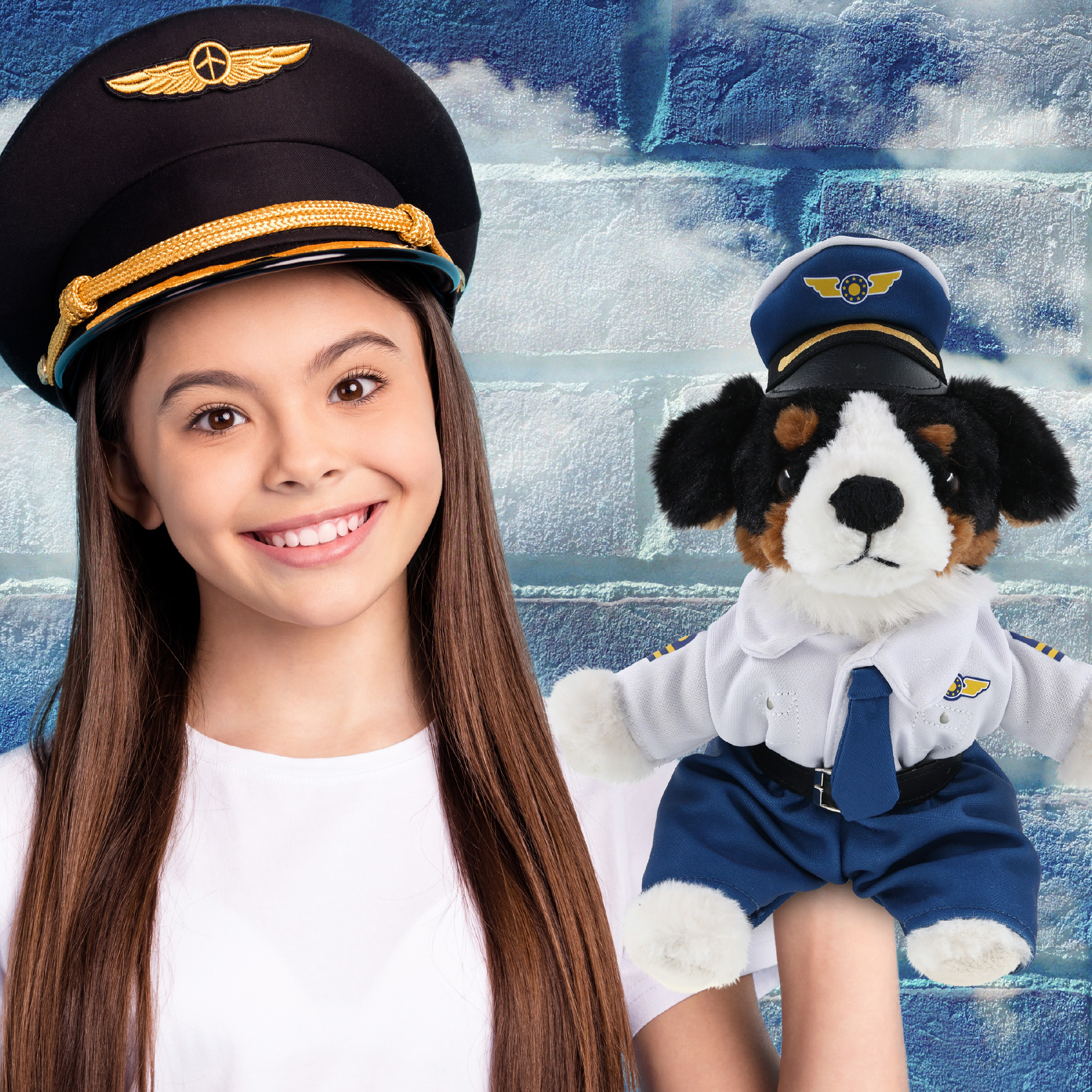 • Features a Cute Teddy Bear Plush with Pilot Uniform Costume – This Bernese dog doll features ready-to-fly pilot clothes for teddy bears. The Bernese dog plush features cool details and realistic design, while the pilot career dress up costume features a white button-up aviation uniform shirt with printed pilot wings and sleeve stripes, blue pants with an elastic waistband, a black belt, a matching blue tie, and a classic pilot captain hat.