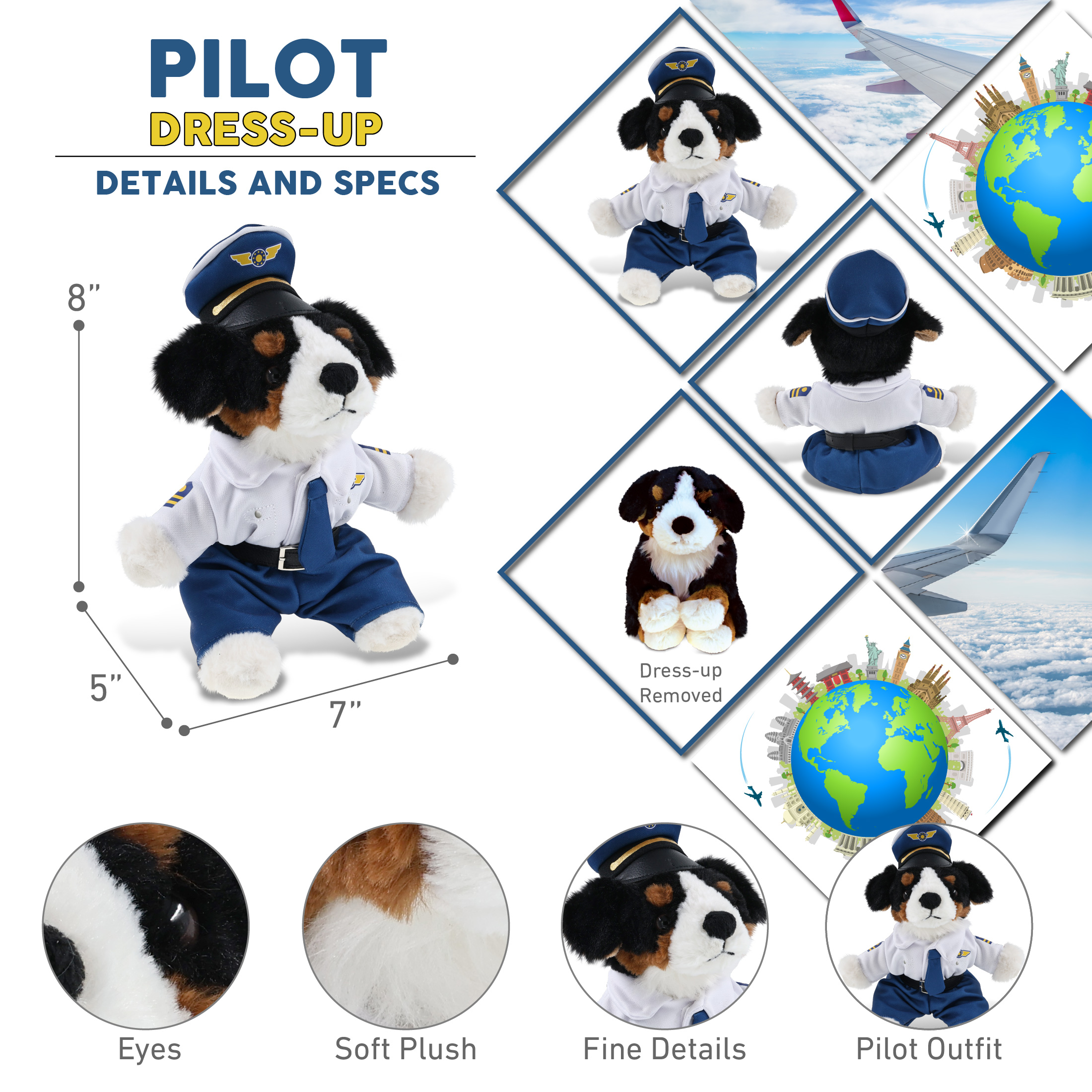 DolliBu Bernese Dog Stuffed Animal with Pilot Costume and Name Personalization – Cute Pet Animal Bernese Dog Plush Toy with Airplane Aviation Uniform Dress Up – 8 Inches