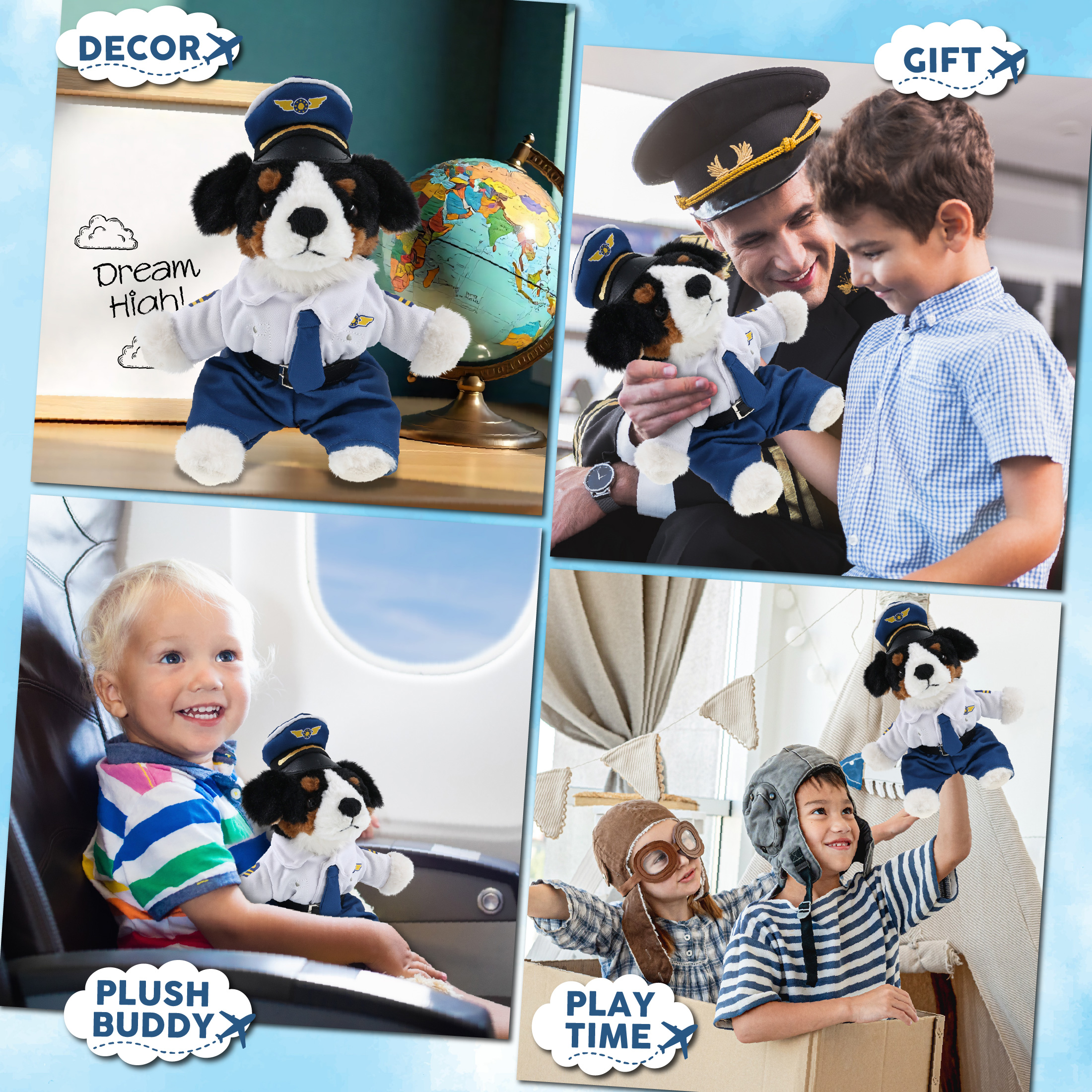 • The Pilot Stuffed Bernese Dog Plush is Perfect for Aviation Lovers – Everyone who loves aviation will be thrilled to have a pilot stuffed bear, whether it’s a cute stuffed animal gift or a cute teddy bear plush for aviation-themed collections. Perfect pilot fluffy stuffed animal for flight pretend play and as a pilot Bernese dog toy gifts for kids who aspire to be pilots when they grow up. Recommended for ages 3 and up.