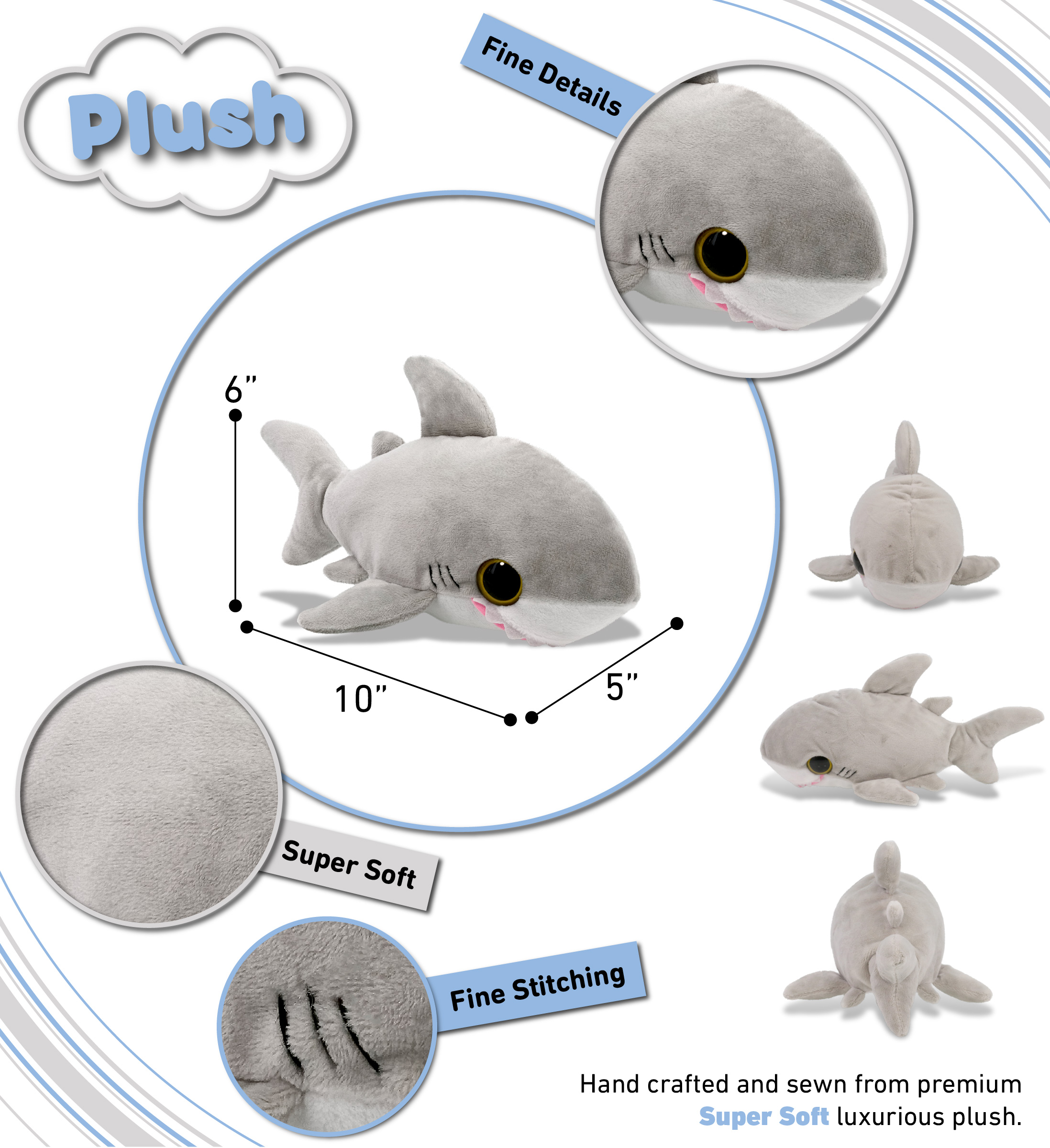 Puzzled Gray Shark Plush, 6 Inch Collectible Decorative Big Eyes Stuffed Animal Soft Take A Long Plushie Pillow Squishes Washable Cushy Mini Doll Ocean Sea Life Themed Kids Toddlers Toy & Games