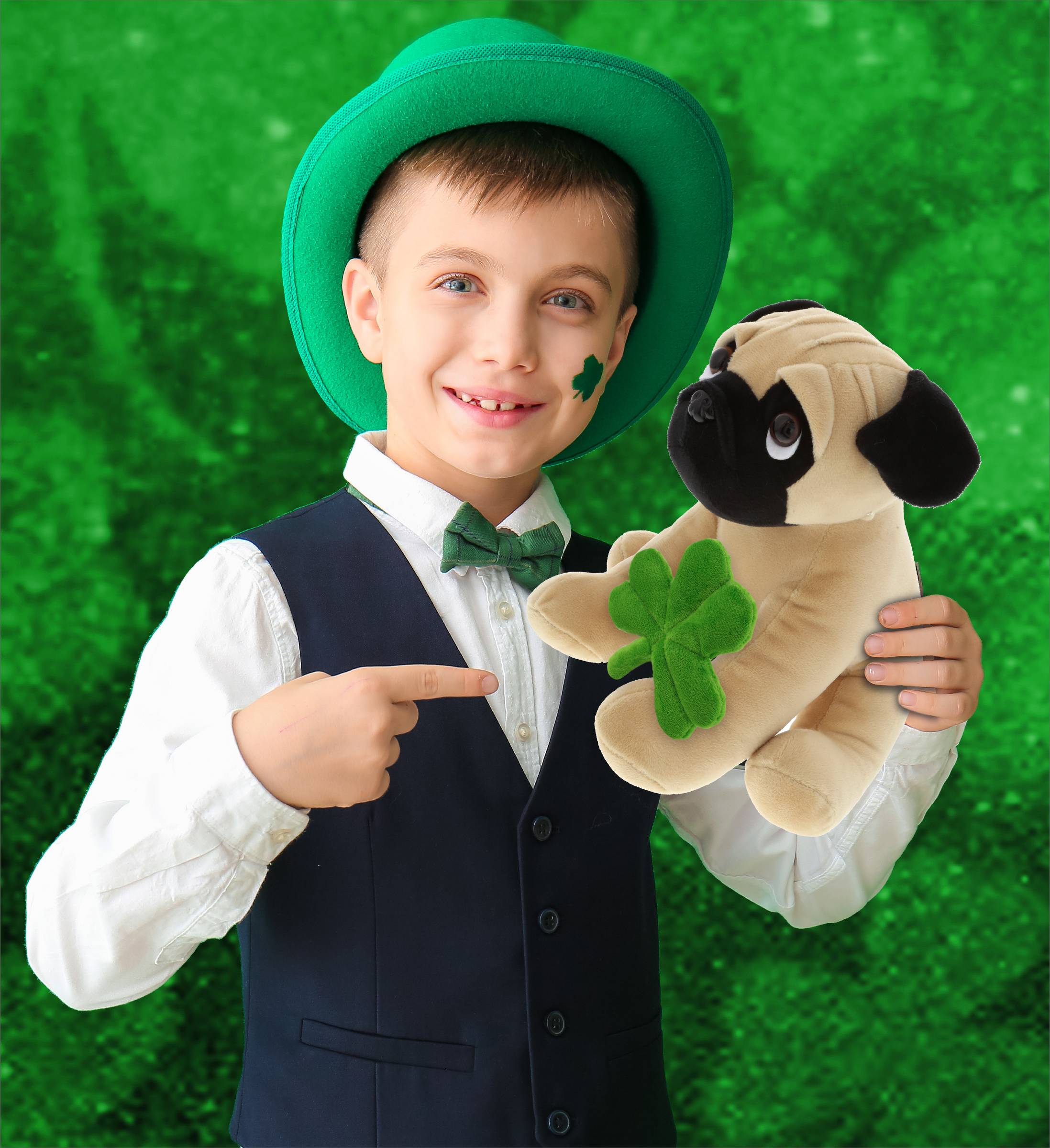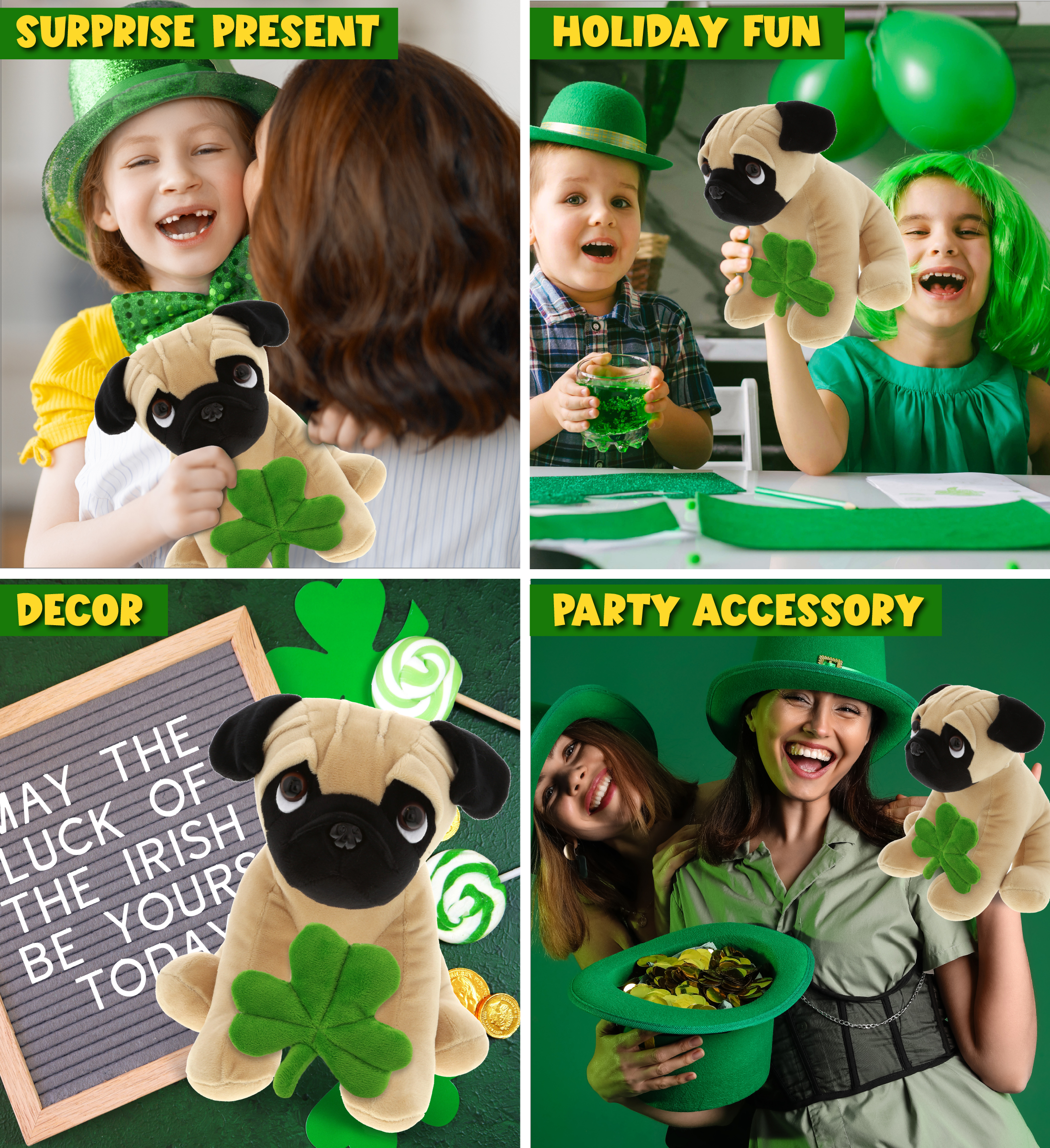 - IDEAL USE FOR THE PUG DOG STUFFED ANIMALS – Looking for cool St Patricks Day gifts for women, men or cool stuffed animals for boys and girls? Our pug dog plush is perfect! Use it as a centerpiece for St Patricks Day decorations office or as St Patricks Day birthday gift. It can be the good luck baby first stuffed animal or gift as a St Patricks Day baby toy. The good luck clover is the perfect stuffed animal accessories for St Patrick’s Day.