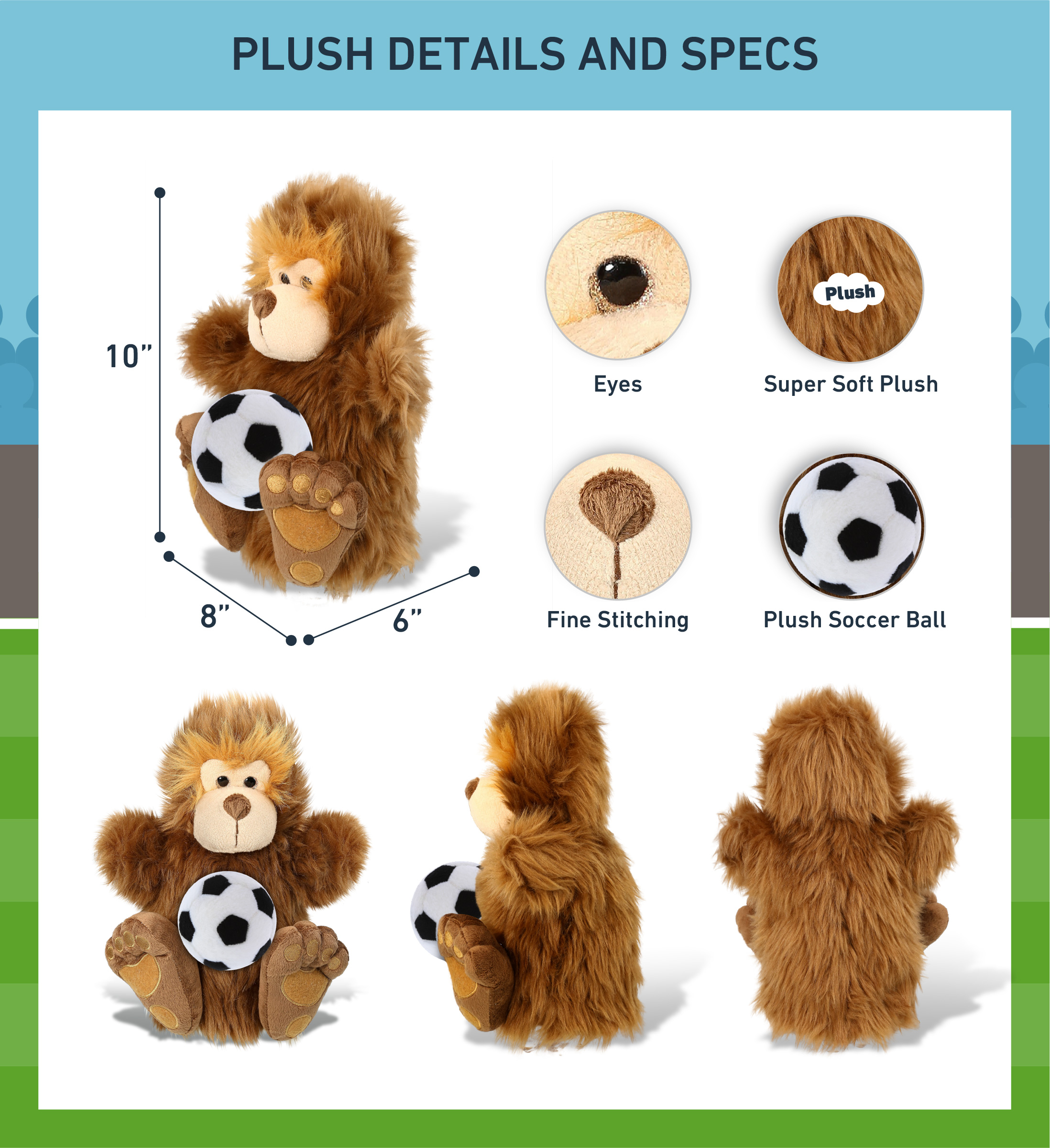 DolliBu Big Foot Hand Puppet Stuffed Animal with Soccer Ball Plush – Huggable Big Foot, Adorable Playtime Plush Toy, Cute Wild Life Gift, Super Soft Stuffed Doll Animal Toy for Kids, Adults – 10 Inch