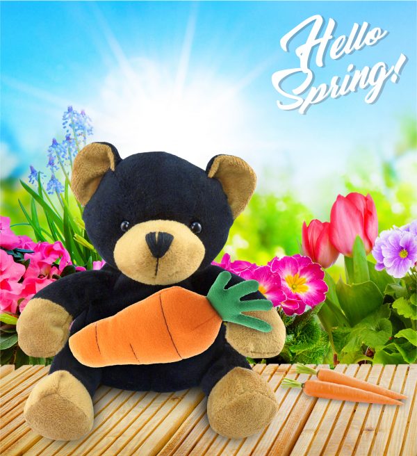 - HIGH-QUALITY TEDDY BEAR WITH CARROT – The Super Soft Plush Black Bear is a plush toy made of premium-quality polyester and stuffed with soft fillings. Covered with black fluffy plush. A snuggly wildlife toy crafted with durable materials, designed to deliver a Welcome Spring and Happy Easter message to your loved ones in an adorable way. To maintain the cleanliness of the Black Bear plush, surface wash with cold water and allow to air dry.