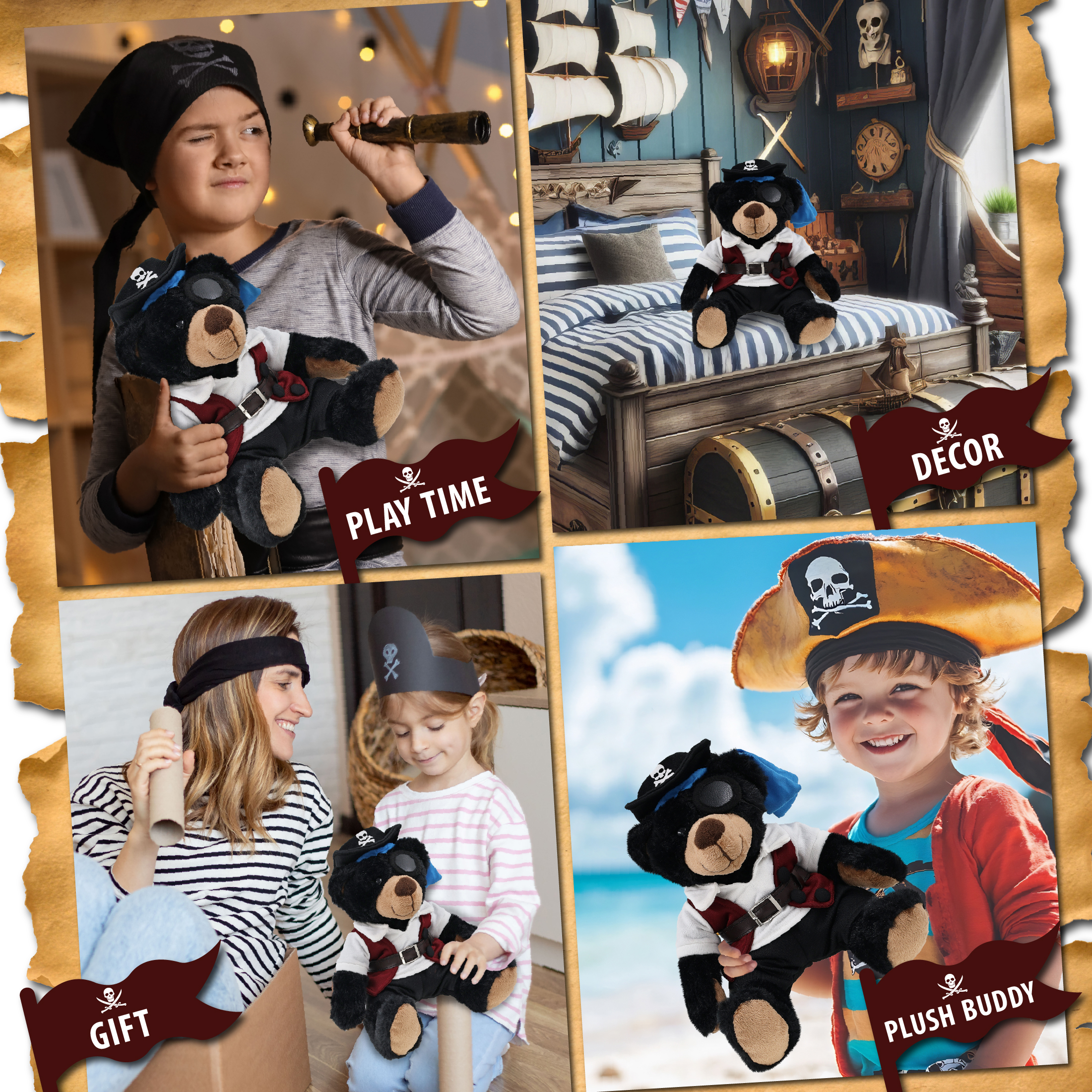 - Perfect Black Bear Stuffed Toy for Pirate Adventure Lovers – Whether you’re into stuffed animal accessories or teddy bear clothes for stuffed animal toys, this plush brings a fun twist to your pirate toys collection. Great gifts for pirate lovers or those who love pirates and the sea. Bear’s clothes can be used as Halloween costume accessories for plush toys. Add it to your Halloween stuffed animals; share accessories with similar stuffed bears.