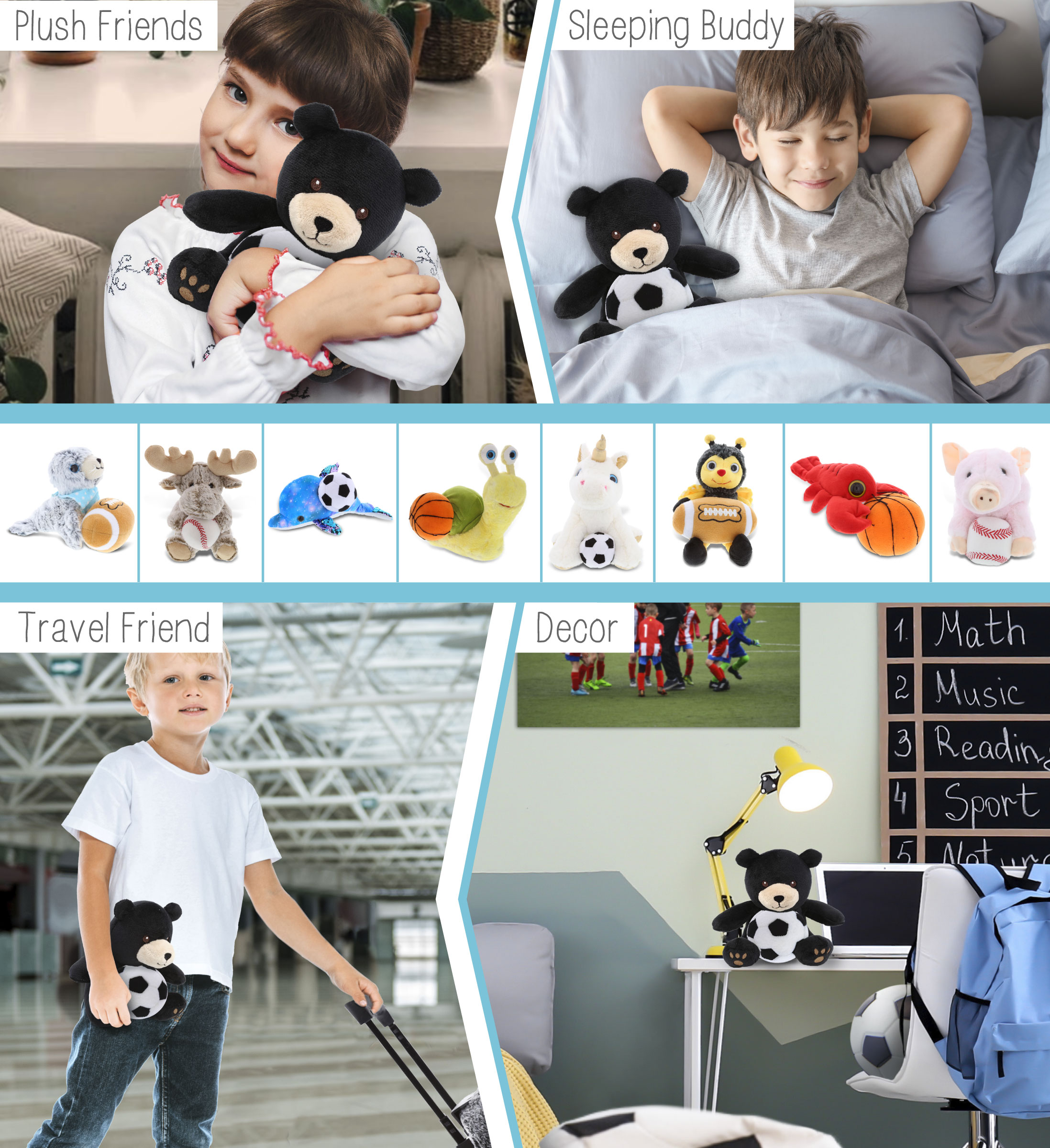 - INCLUDED WITH THE PURCHASE OF ADORABLE CUTE BEAR PLUSH – Includes 1 DolliBu Black Bear Super Soft Plush with a soccer ball plush, decorated with realistic features of cute black bear. The black bear’s body with a sports gift ball plush makes the plush perfect for cuddles. The black bear plush toy features details like its cute ears. The black bear’s eyes make the critter so charming. The cute plush toy buddy measures 5Lx4Wx6H inches.