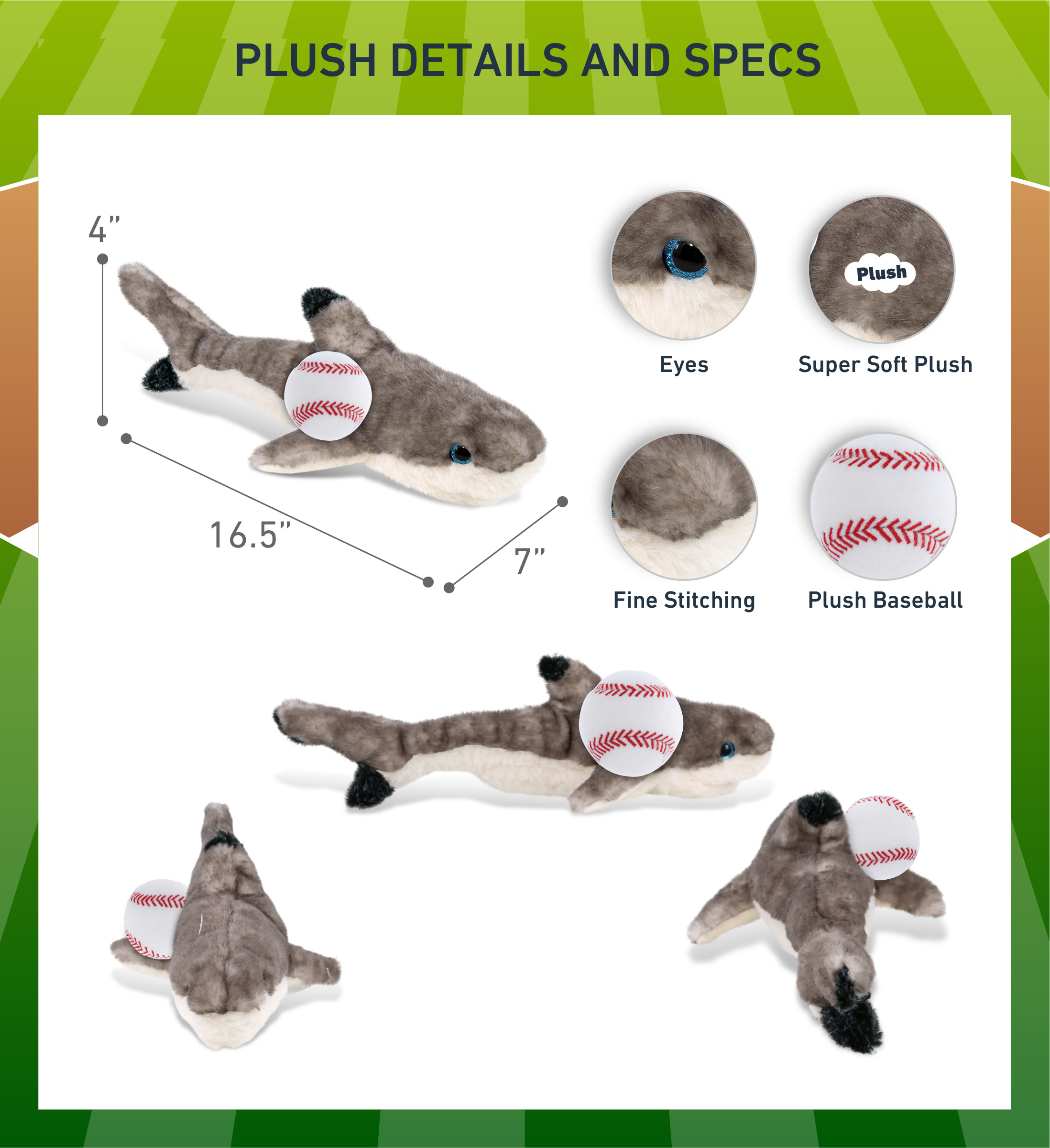 • The Shark with Baseball Plush Toy Is for Everyone Who Loves Baseball Toys – Anyone will love receiving a cute stuffed toy with cool baseball plush. The girls and boys baseball toy and shark will be loved by all ages, making it perfect gifts for boys who love baseball. Super soft Blacktip Reef Shark stuffed animal are timeless gifts for baseball players, or as baseball fan gifts, and for kids who love decorating their rooms with baseball stuff.