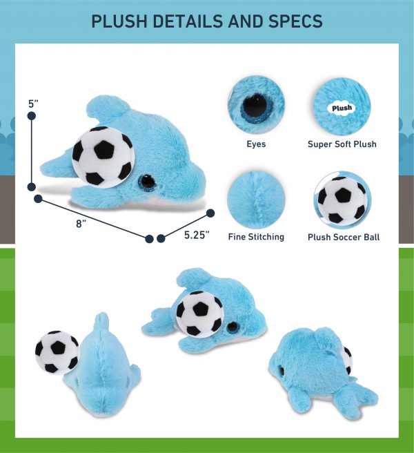- The Stuffed Animal Blue Dolphin Comes With A Unique Design You Will Love – Have an exciting imaginary play with your little one and the dolphin toy. DolliBu’s Big Eye Blue Dolphin will surely bring a smile to your loved ones who love ocean animals and soccer sport. A must-have toy for family bonding. Add cute stuffed animals for kids and adults, like the super cute and realistic blue dolphin plush to your ocean-themed room and decor.