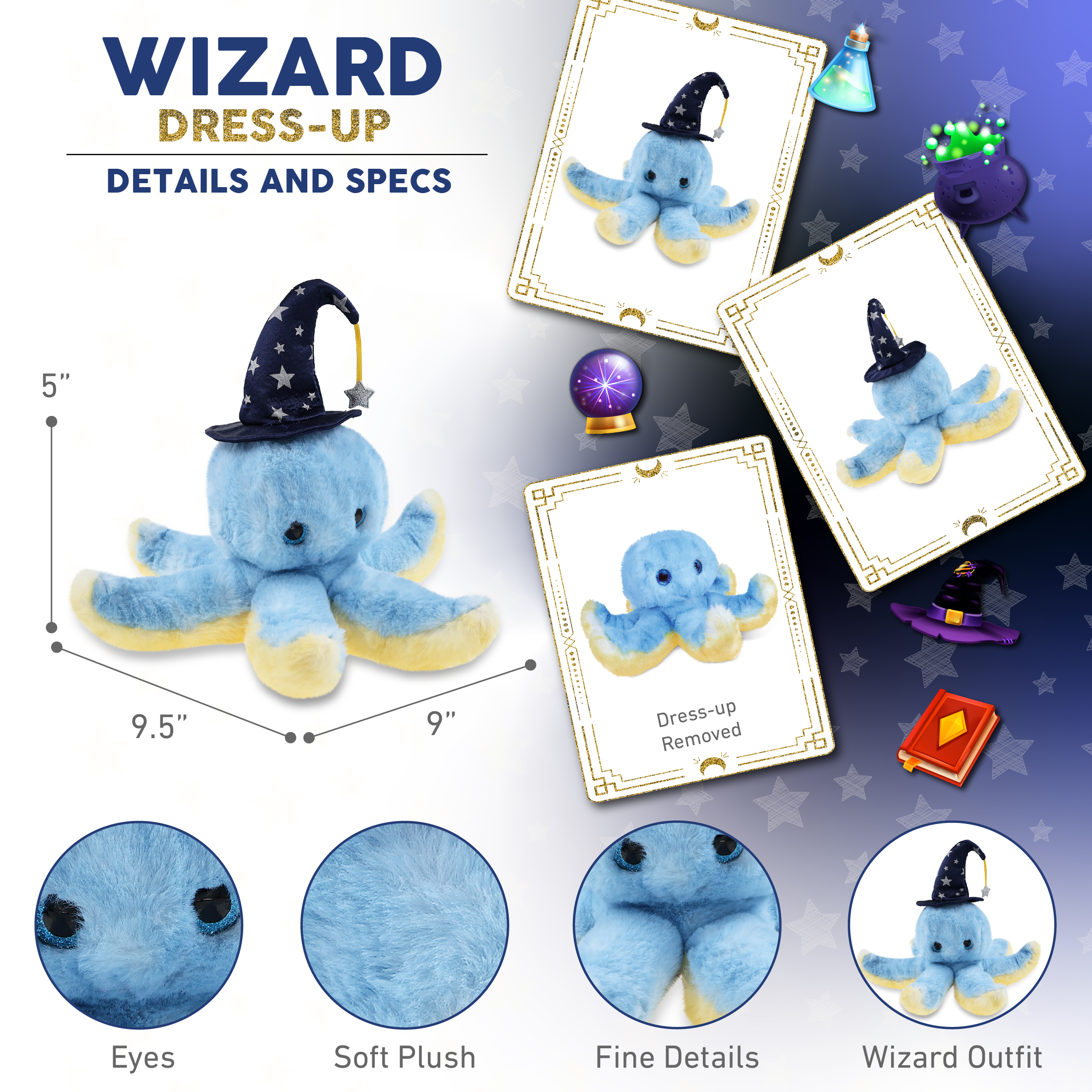 - The Wizard Stuffed Blue Octopus Plush is Perfect for Fantasy Lovers – Everyone who loves stuffed animal toys will be thrilled to have a wizard octopus stuffed toy, whether it’s a cute stuffed animal octopus gift or a cute cuddle plush for a wizard-themed collection. Perfect wizard fluffy stuffed animal for pretend play and as a toy gifts for kids who love stuffed toys and stuffed animals for boys and girls. Recommended for ages 3 and up.
