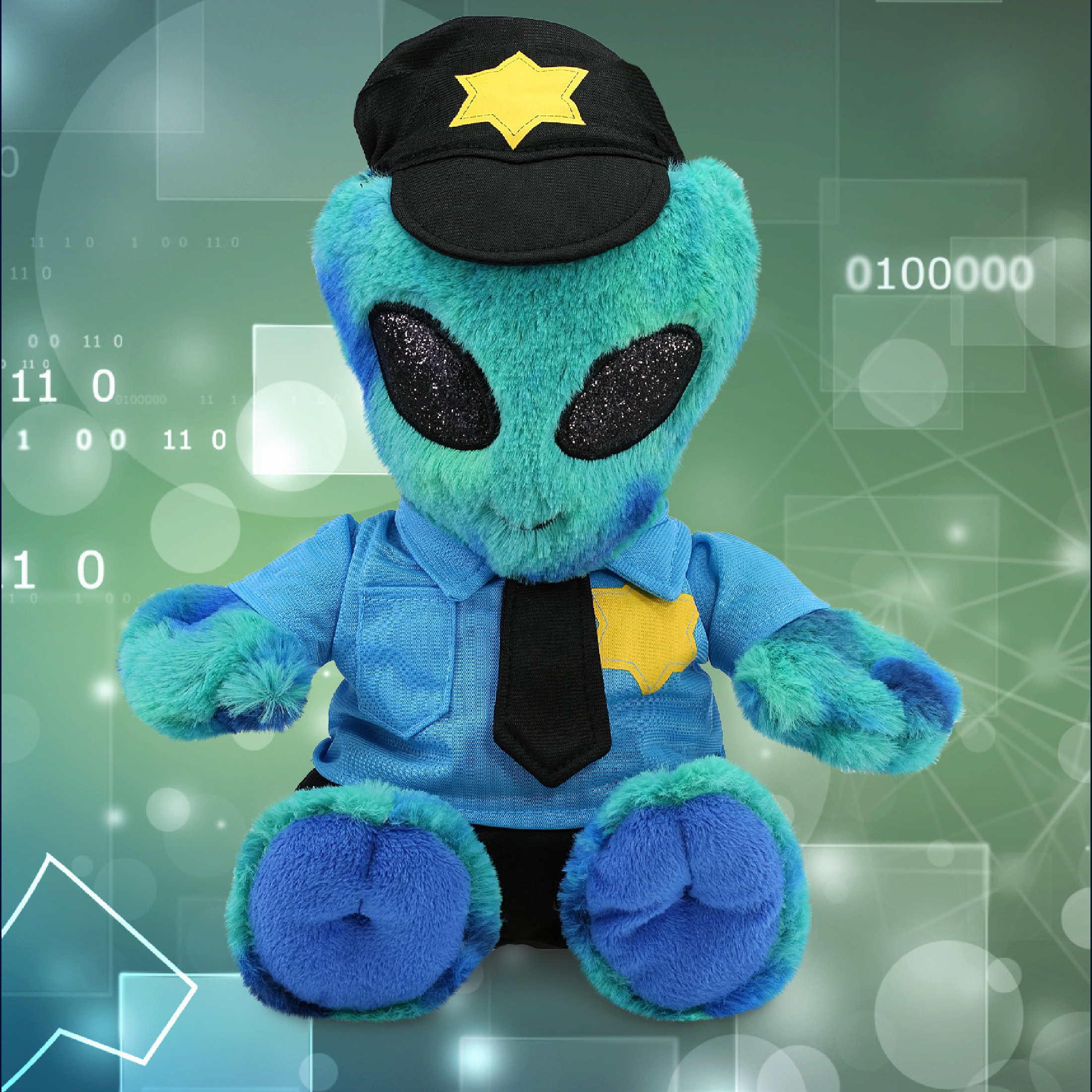 - The Alien Plush Is for Anyone Who Loves Stuffed Dolls – Novelty Super Soft Blue Tie-Dye Alien Police Officer stuffed toy in uniform was designed with super soft plush, a sweet plush gift for your loved one who dreams of becoming a policeman when they grow up. Make your little one feel more secure and comfortable with their police cuddle plush toy. Unique stuffed toy with police costume outfit for kids to hug when they are alone.
