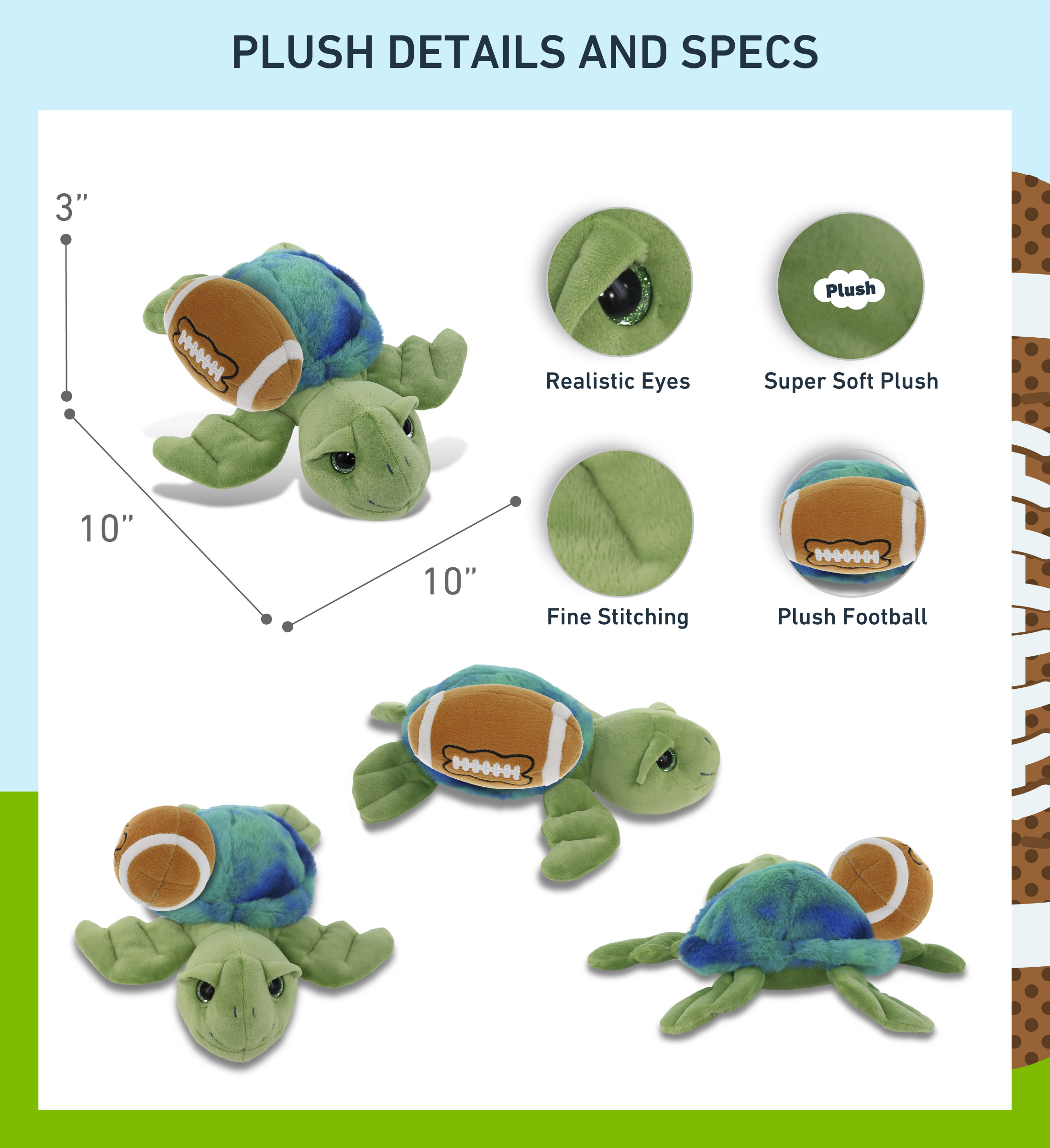 - Included with the Purchase of Adorable Cute Sea Turtle Plush – Includes 1 DolliBu Super Soft Blue Tie-Dye Green Sea Turtle with a football plush, decorated with realistic features of a cute turtle. The body with a sports gift ball plush makes the plush perfect for cuddles. The turtle plush toy features its iconic shell. The turtle’s eyes make the critter so charming. The cute turtle plush toy buddy measures 10Lx10Wx3H inches.