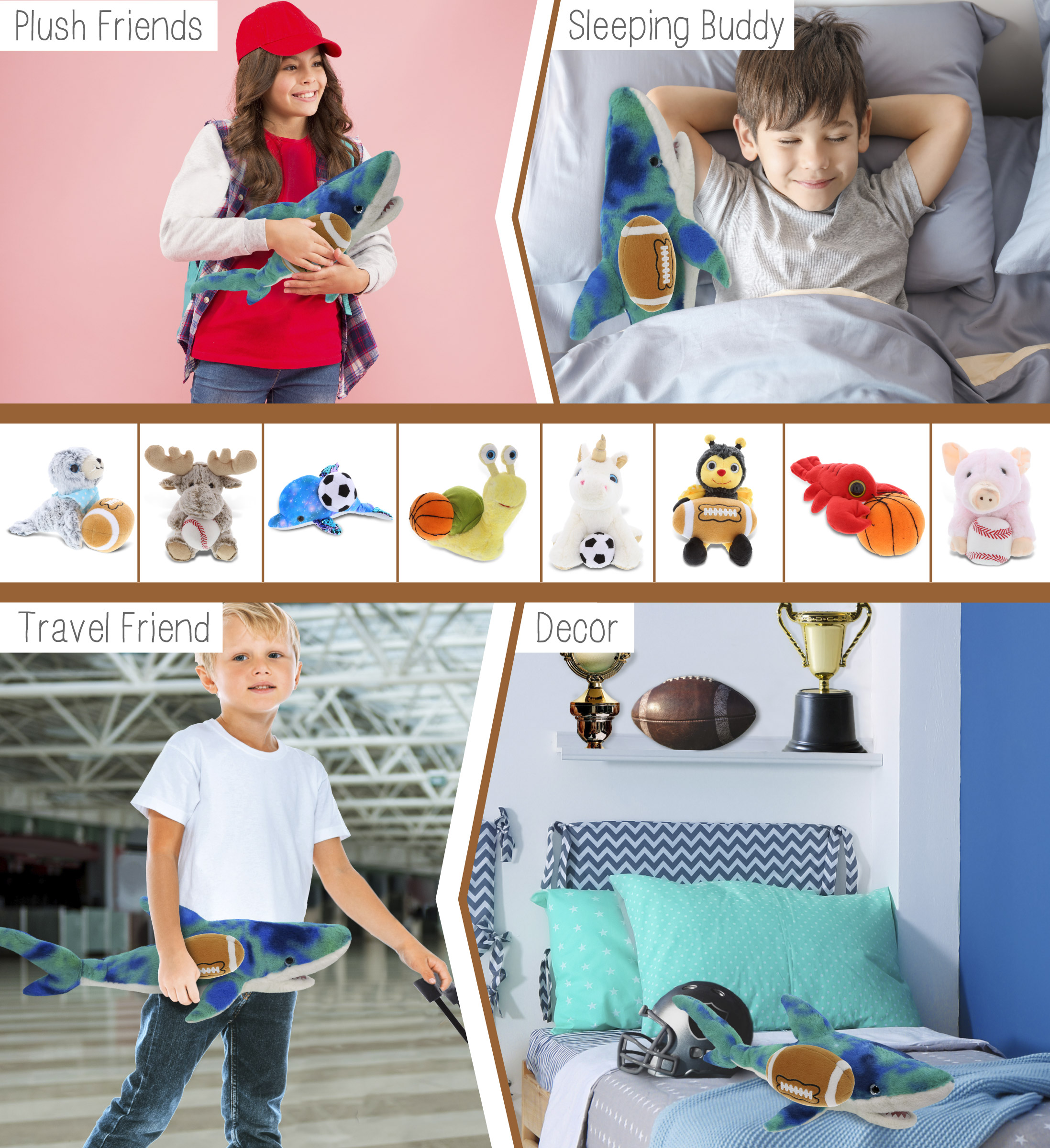 - High-Quality Super Soft Shark Stuffed Animal – The machine-sewn shark toy plush and football are made of premium-quality polyester, stuffed with soft, fluffy polyester fillings. Made with durable and child-friendly features. Cute and snuggly shark plush toy. Cute, soft toys designed to be your little one’s best buddies. To maintain fluffy stuffed animals, wash plush toys with cold soapy water and allow them to air dry.