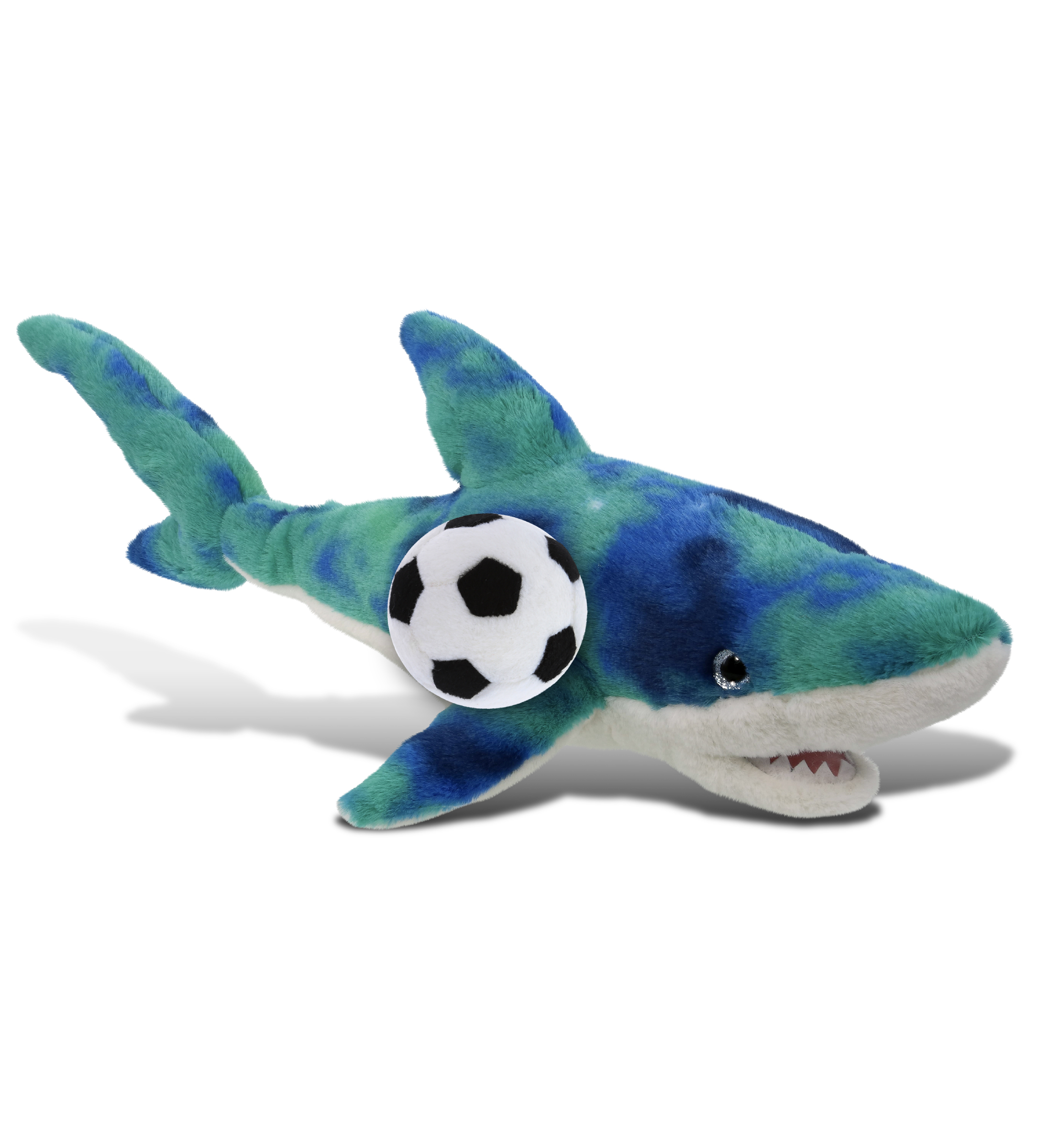 - Personalization, Customization, and Add-On Options – This Super Soft Blue Tie-Dye Shark sports stuffed animal comes customized with a Soccer Ball Plush. You can personalize your shark plush with the name of your loved one imprinted on the item. You also have the option to add some or all of the cool add-ons to make your gift extra special: 1) Gift Bag; 2) Tissue Paper; 3) Greeting Card.