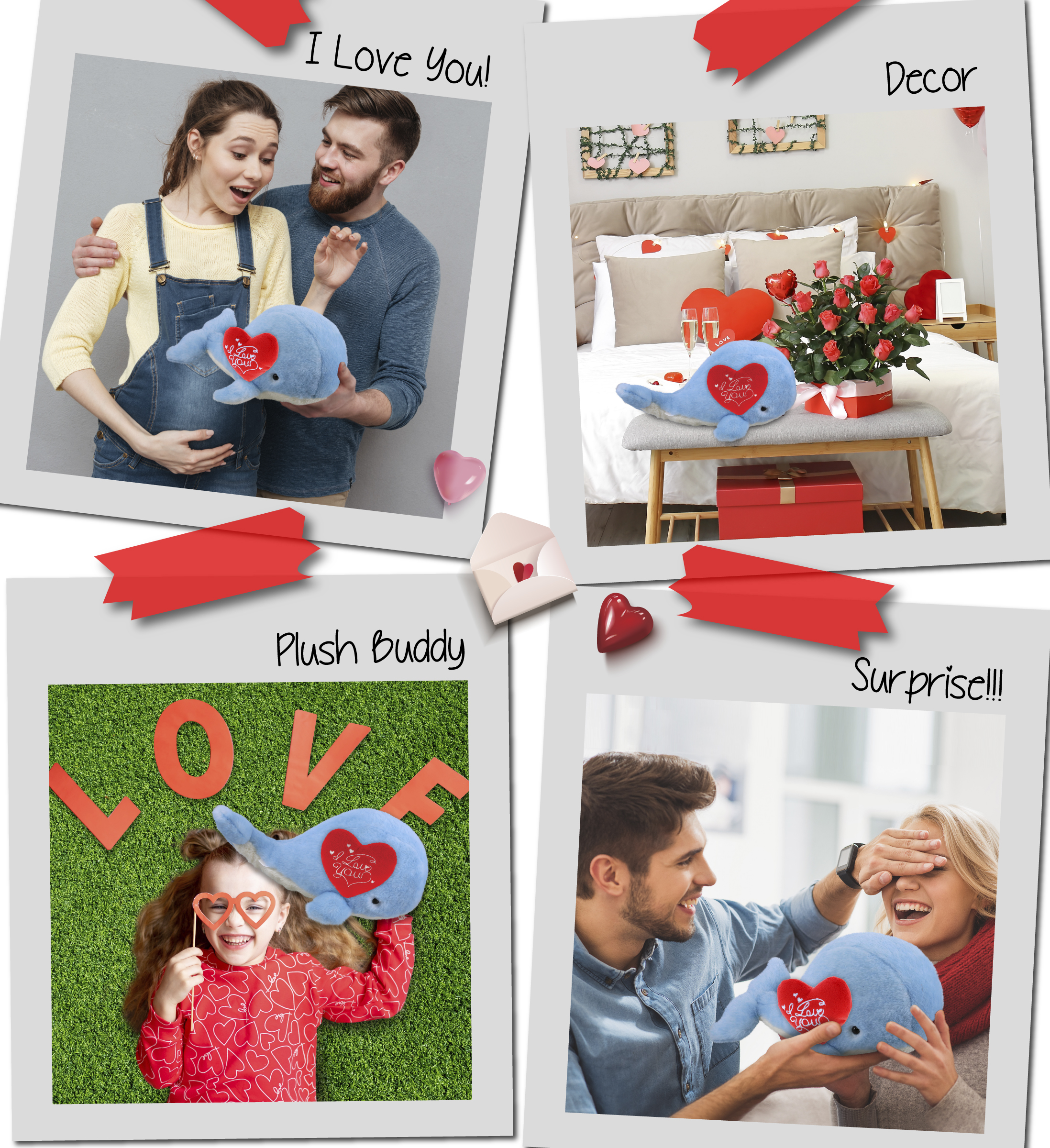 - IDEAL USE FOR WHALE VALENTINES STUFFED ANIMAL – Surprise your loved one with a sentimental plush on Valentine’s Day, birthday, anniversary, or on any occasion to make any day extra special. Gifting plush blue whale with an I Love You message is a cute way to express your love. Make occasions memorable and surprise them with a huggable whale plush to display in any bedroom or office or be a cuddly gift in a long-distance relationship.