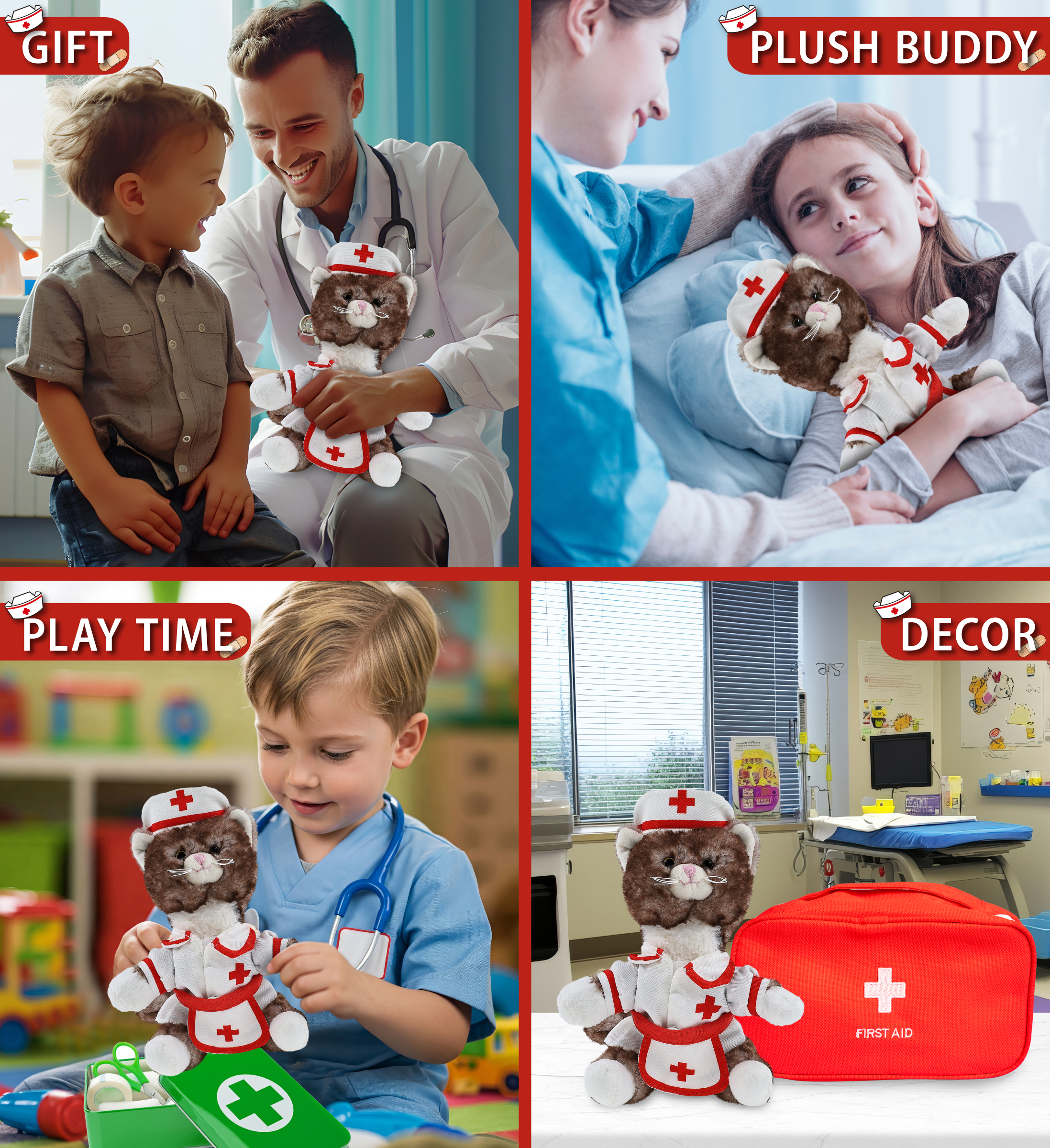 - Perfect Pet Animal Stuffed Toy Nurse Plush for Those Who Appreciate Health Care Workers – If you’re looking for a gift for nurse graduate, a get well teddy bear for your sick friend, the stuffed nurse cat brings a comforting, playful vibe to any occasion. Ideal hospital gifts for children to make them feel safe or as medical toys for kids to inspire them at a young age. The perfect stuffed animal for nurses and cool storytelling.