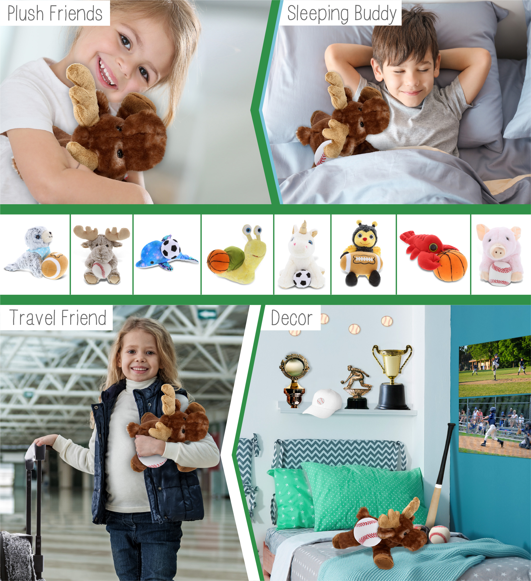 - Ideal Use for the Kids Baseball Plush and Stuffed Brown Lying Moose – The moose baseball stuffed animal makes a great addition to your kids baseball stuff for boys collection. Great gifts for boys who love sports and plush dolls. If you’re looking for the perfect baseball gift ideas for kids, then this stuffed moose with baseball plush is the perfect choice. It’s the perfect stuffed animal baseball birthday gifts to give on any special occasion.