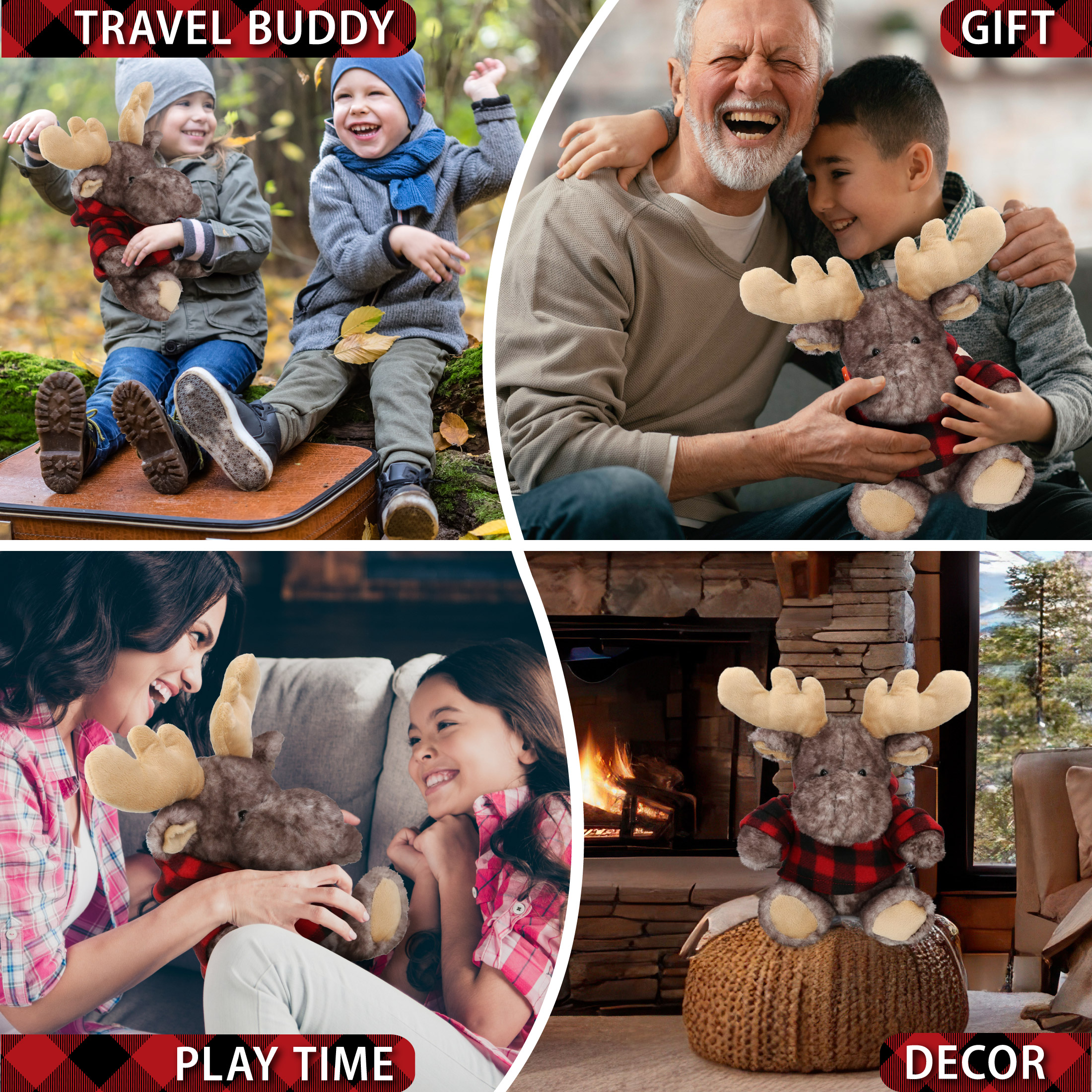- Ideal Use for The Moose with Plush Clothes – The moose winter plush is the ultimate stuffed teddy bear buddy! Whether on a shelf as holiday decor or as Christmas teddy bear gift, the moose adds a touch of winter warmth wherever it goes. With its red plaid shirt, the moose plush is great for winter nights and joyful holiday memories. Warm your home this winter season with cute stuffed animals wearing red plaid flannel shirt.