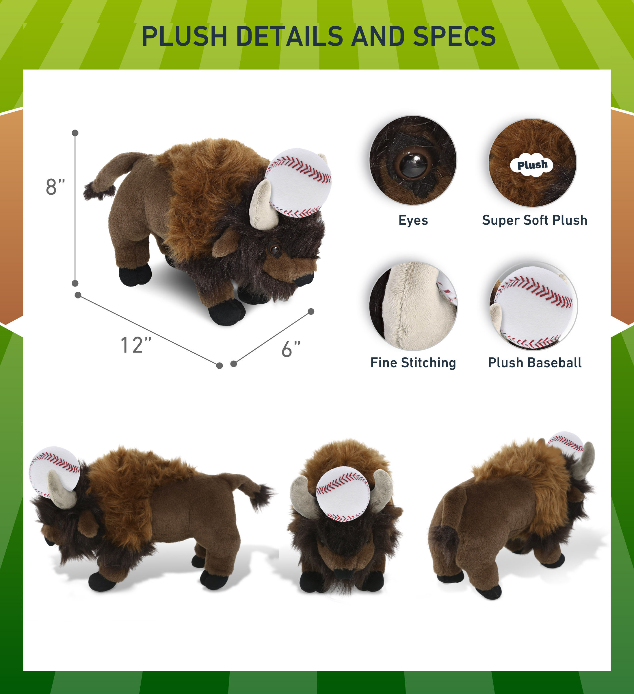 - The Buffalo with Baseball Plush Toy Is for Everyone Who Loves Baseball Toys – Anyone will love receiving a cute stuffed toy with cool baseball plush. The girls and boys baseball toy and buffalo will be loved by all ages, making it perfect gifts for boys who love baseball. Super soft Buffalo stuffed animal are timeless gifts for baseball players, or as baseball fan gifts, and for kids who love decorating their rooms with baseball stuff.