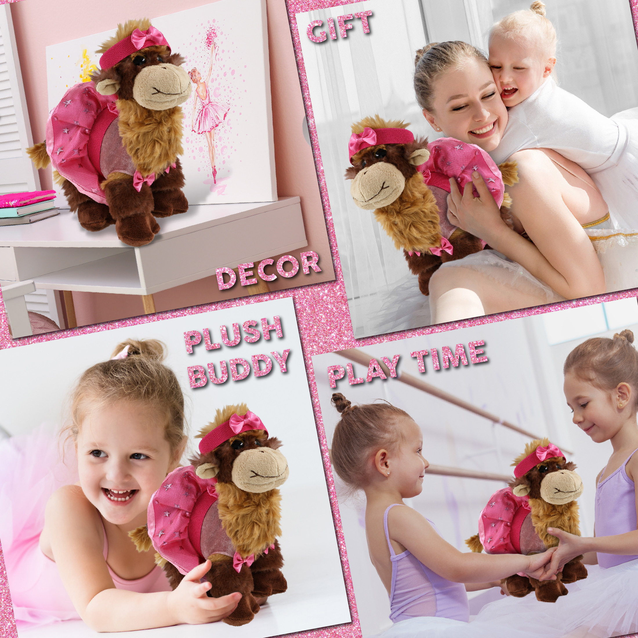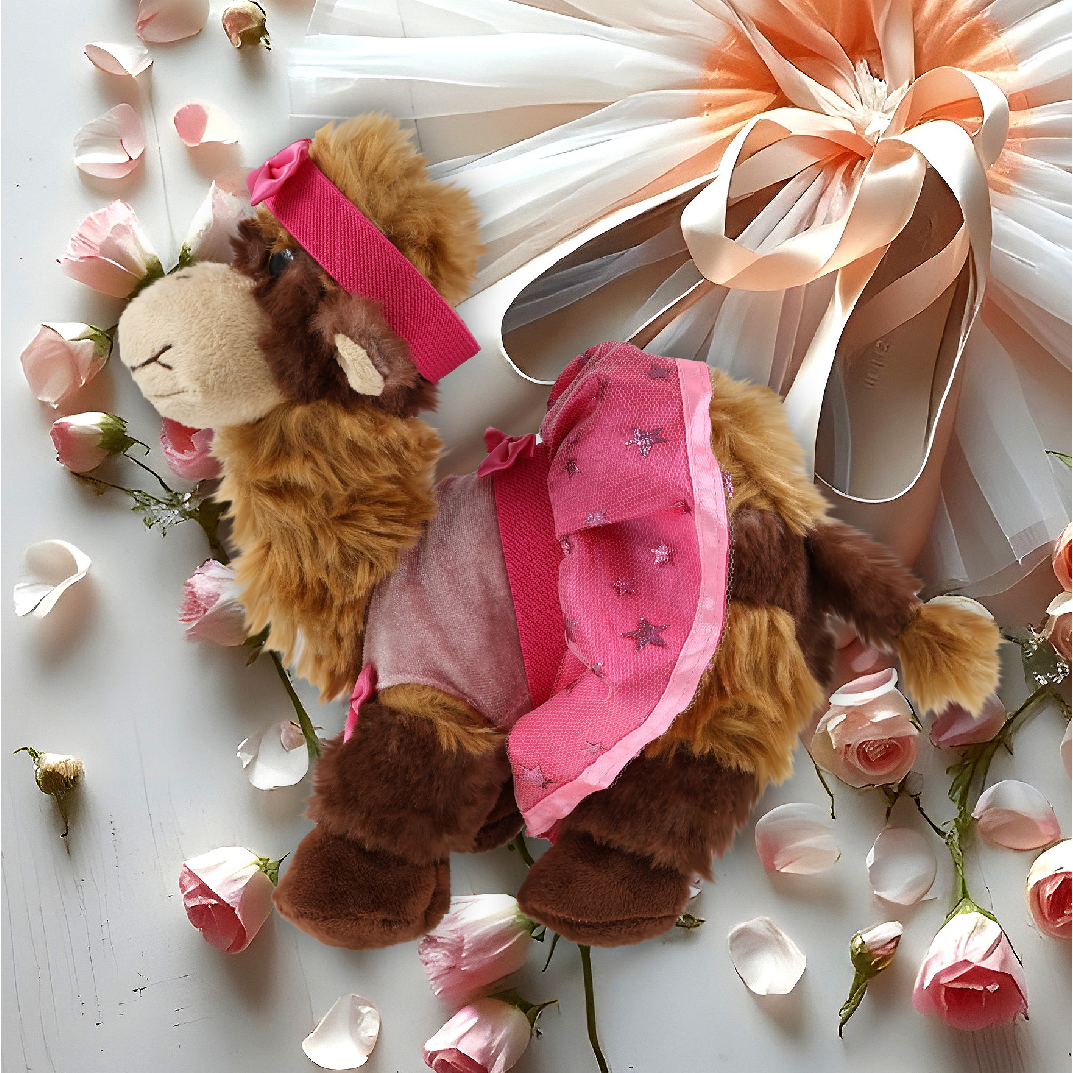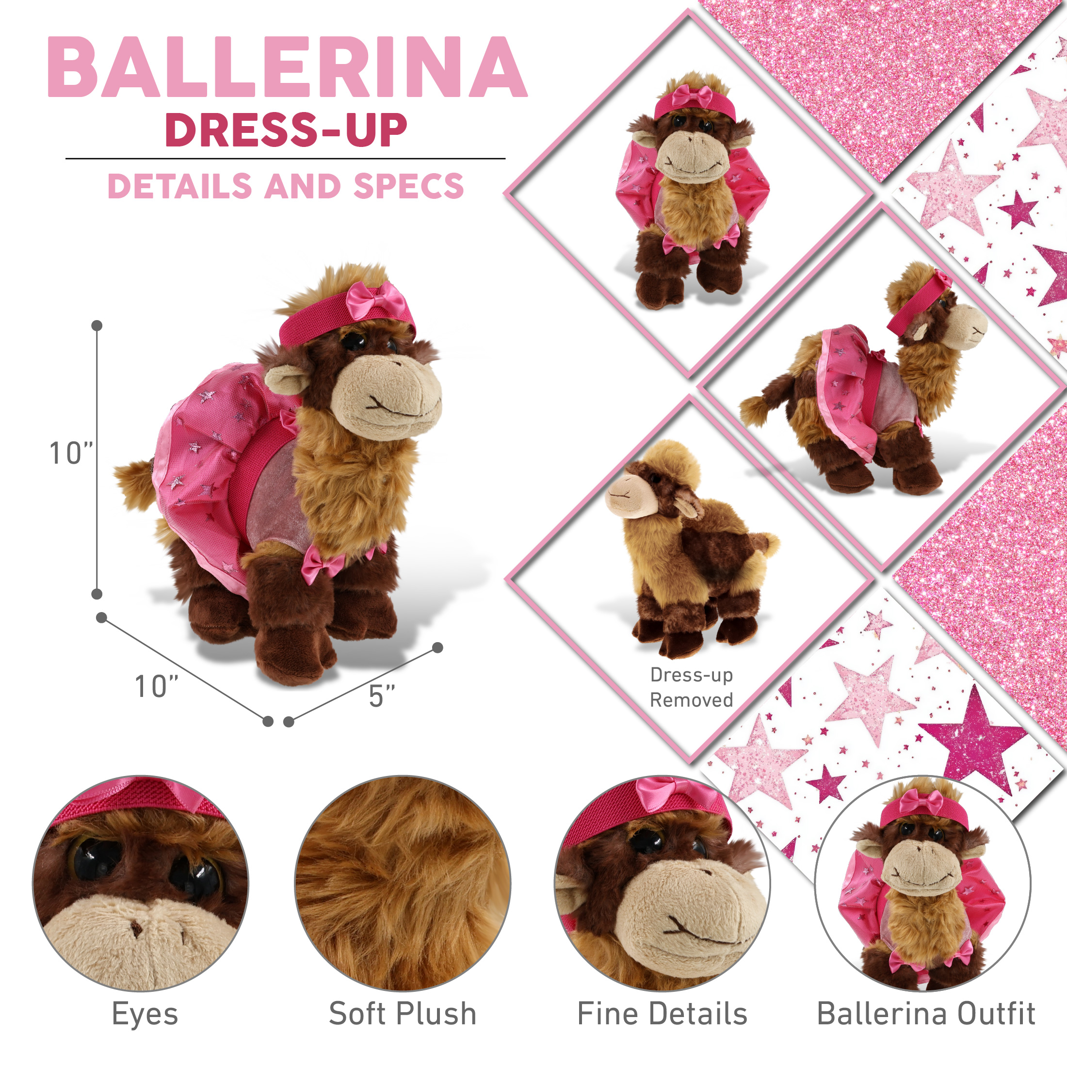 - Ballerina-Themed Stuffed Animal Camel Doll Features a Unique Combination of Animals and Ballet – It features a cute camel plush with adorable pink ballerina clothes. The stuffed animal camel plush toy features a soft plush all over and a set of pink ballerina dress complete with a pink ribbon headband, tutu skirt, and a sleeveless top, making it a cute ballerina stuffy doll little dancers will enjoy to play and collect.