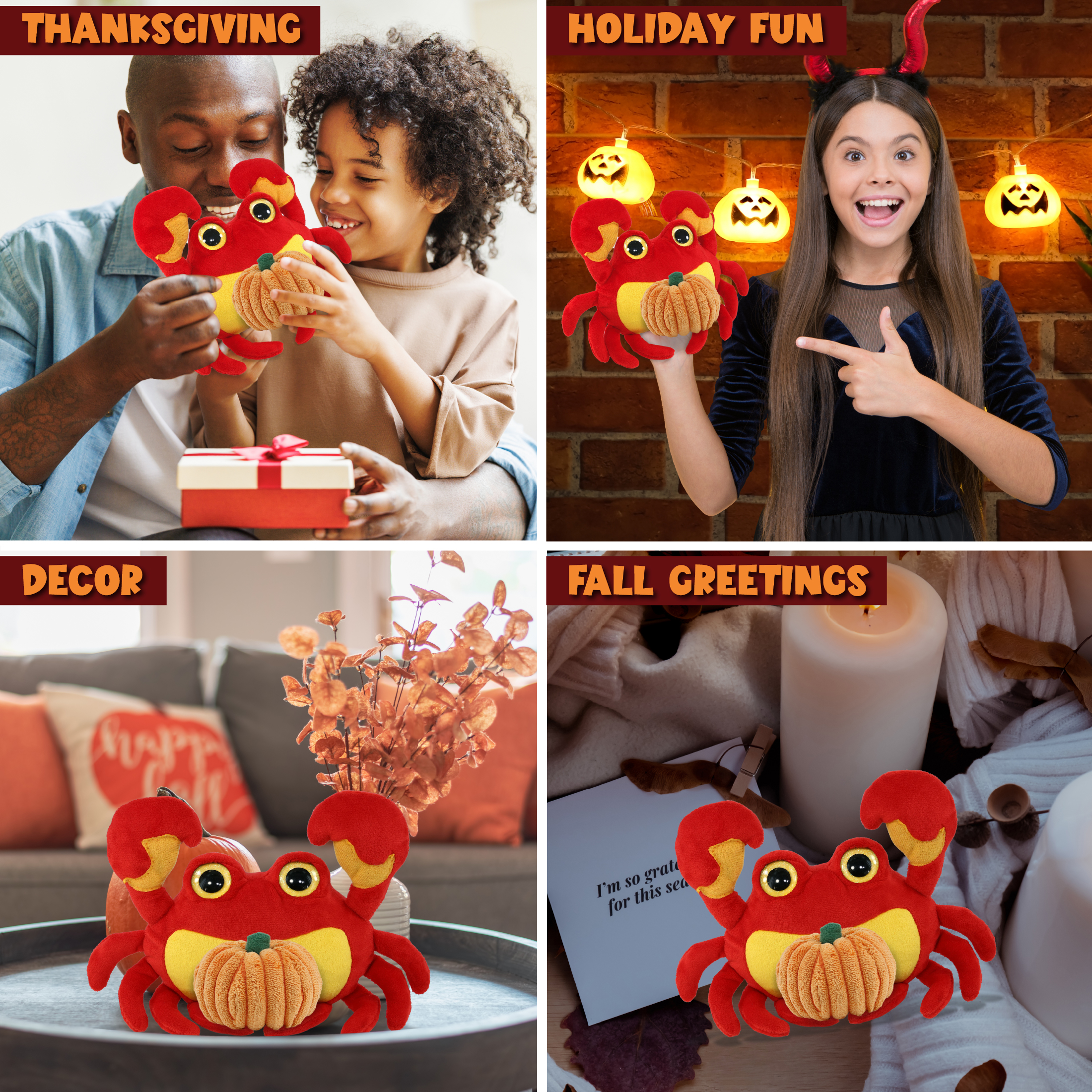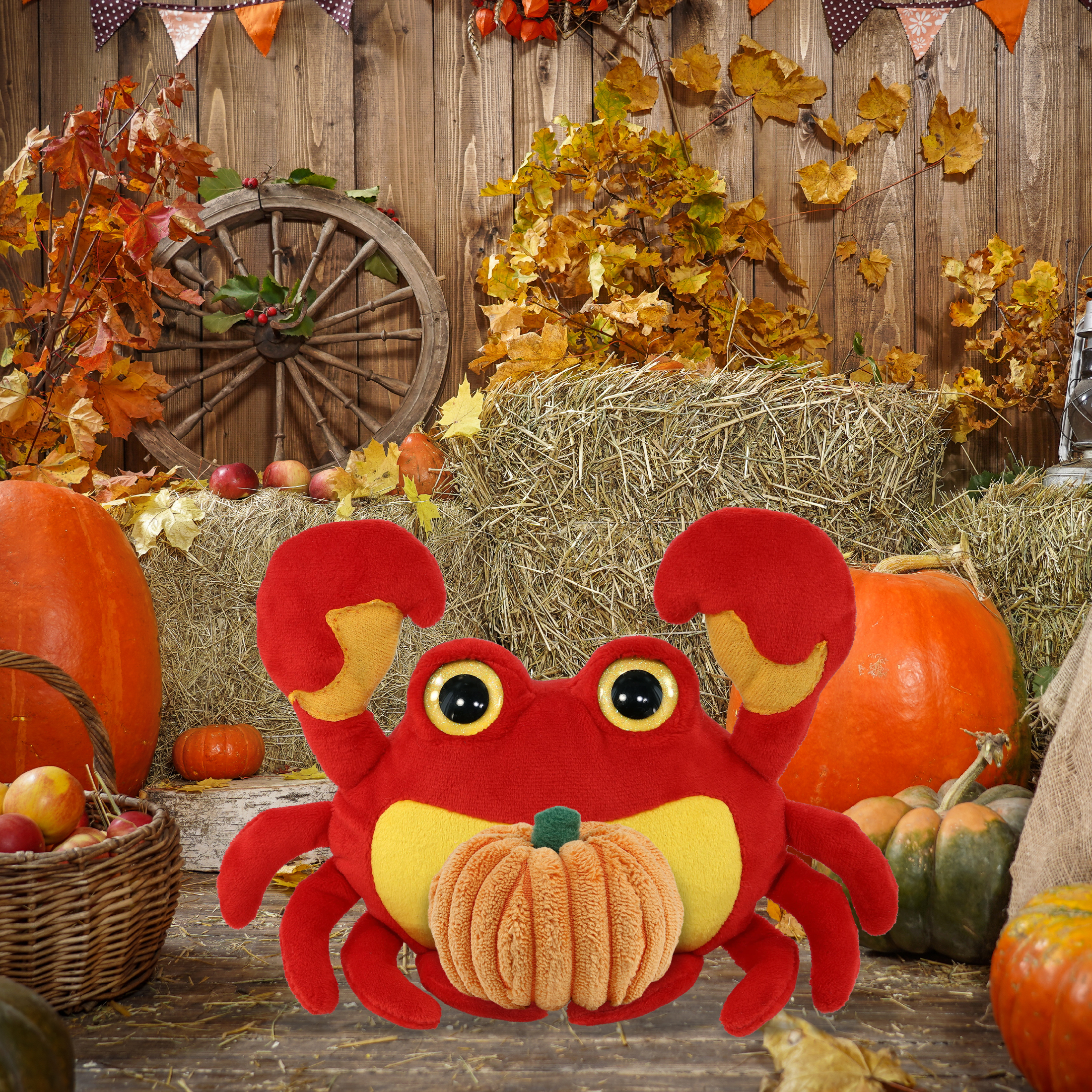 - The Crab Pumpkin Plush Toy Is for Everyone Who Loves Halloween Toys – The Big Eye Plush Crab stuffed animal pumpkin plush toy, designed with a fall plush theme, makes for sweet Halloween kids gifts, babys first Halloween gift and Thanksgiving gifts for friends and family. Welcome spooky month and share the fun of trick-or-treating with loved ones by gifting them a cute custom stuffed animal crab plush with a pumpkin soft toy.