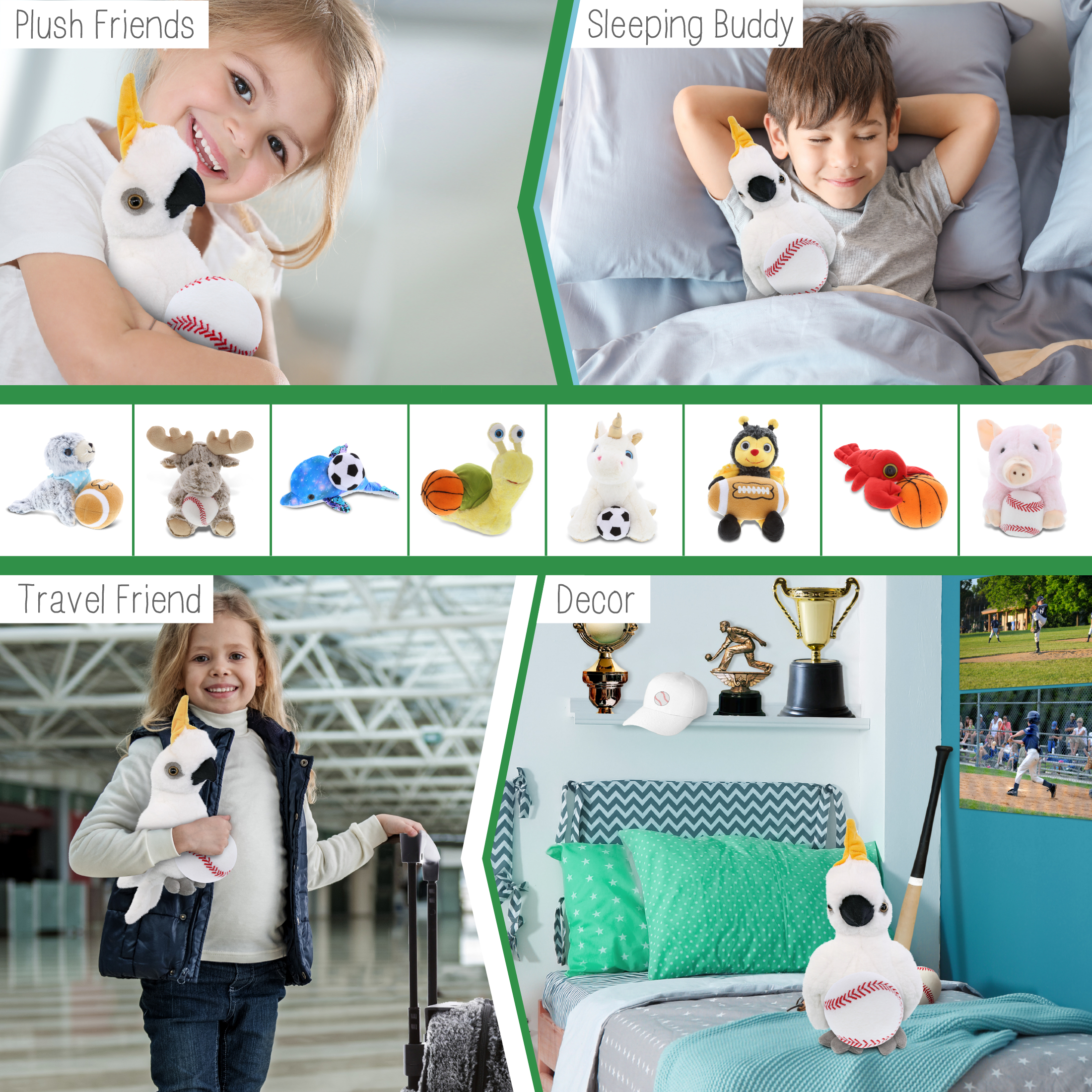 - Ideal Use for the Kids Baseball Plush and Stuffed Cockatoo – The cockatoo baseball stuffed animal makes a great addition to your kids baseball stuff for boys collection. Great gifts for boys who love sports and plush dolls. If you’re looking for the perfect baseball gift ideas for kids, then this stuffed cockatoo with baseball plush is the perfect choice. It’s the perfect stuffed animal baseball birthday gifts to give on any special occasion.