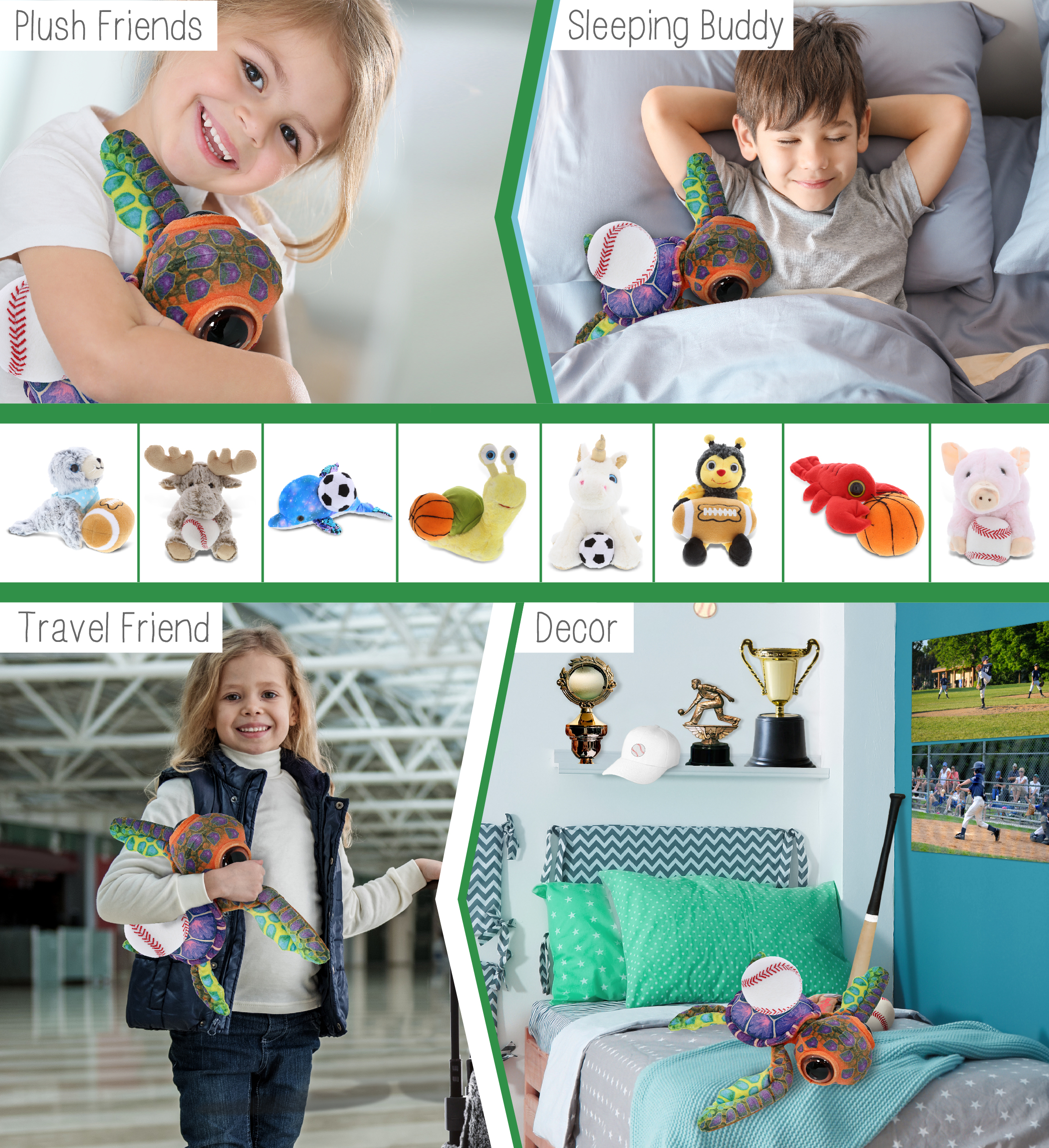 - Ideal Use for the Kids Baseball Plush and Stuffed Sea Turtle – The turtle baseball stuffed animal makes a great addition to your kids baseball stuff for boys collection. Great gifts for boys who love sports and plush dolls. If you’re looking for the perfect baseball gift ideas for kids, then this stuffed turtle with baseball plush is the perfect choice. It’s the perfect stuffed animal baseball birthday gifts to give on any special occasion.