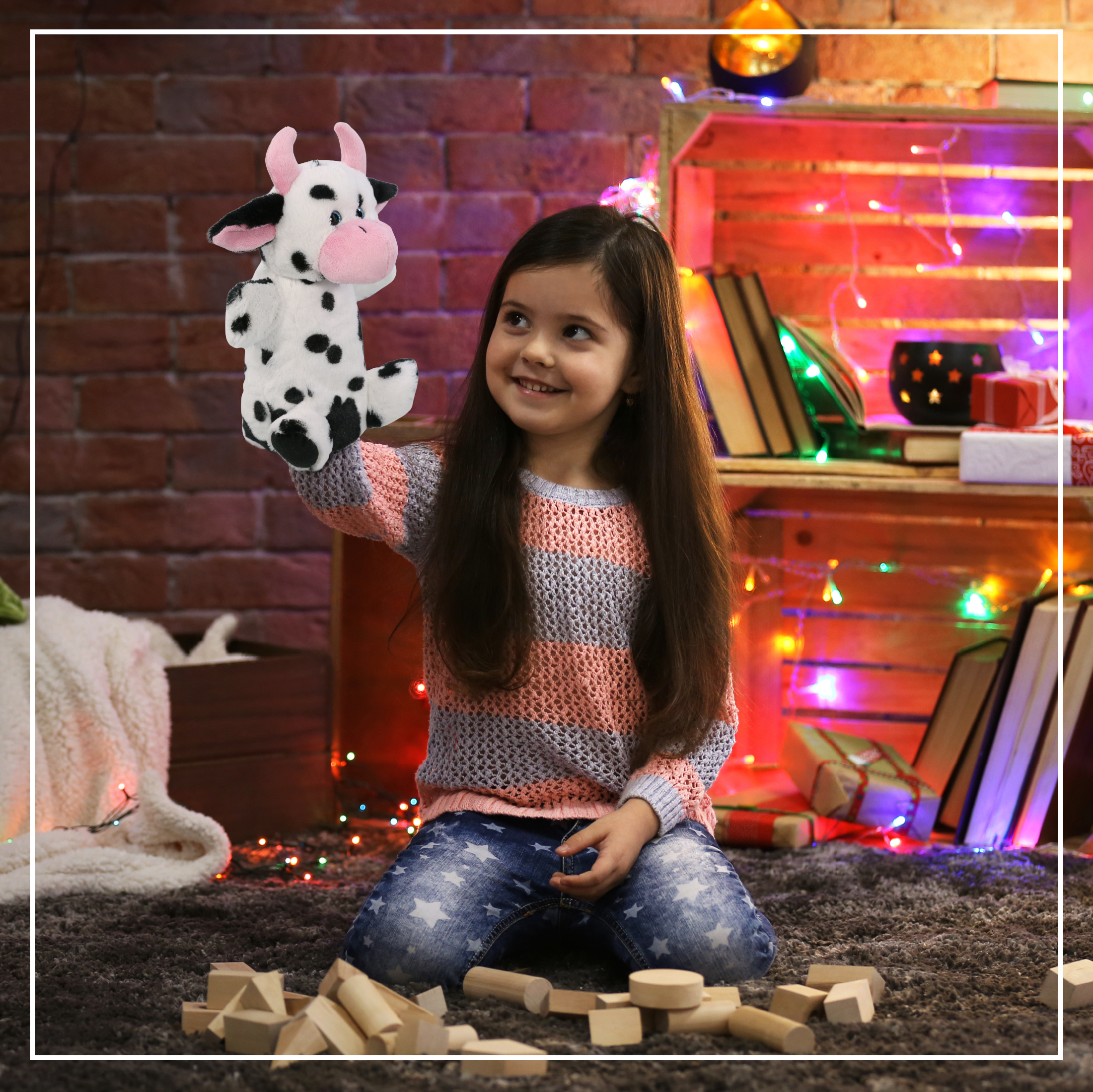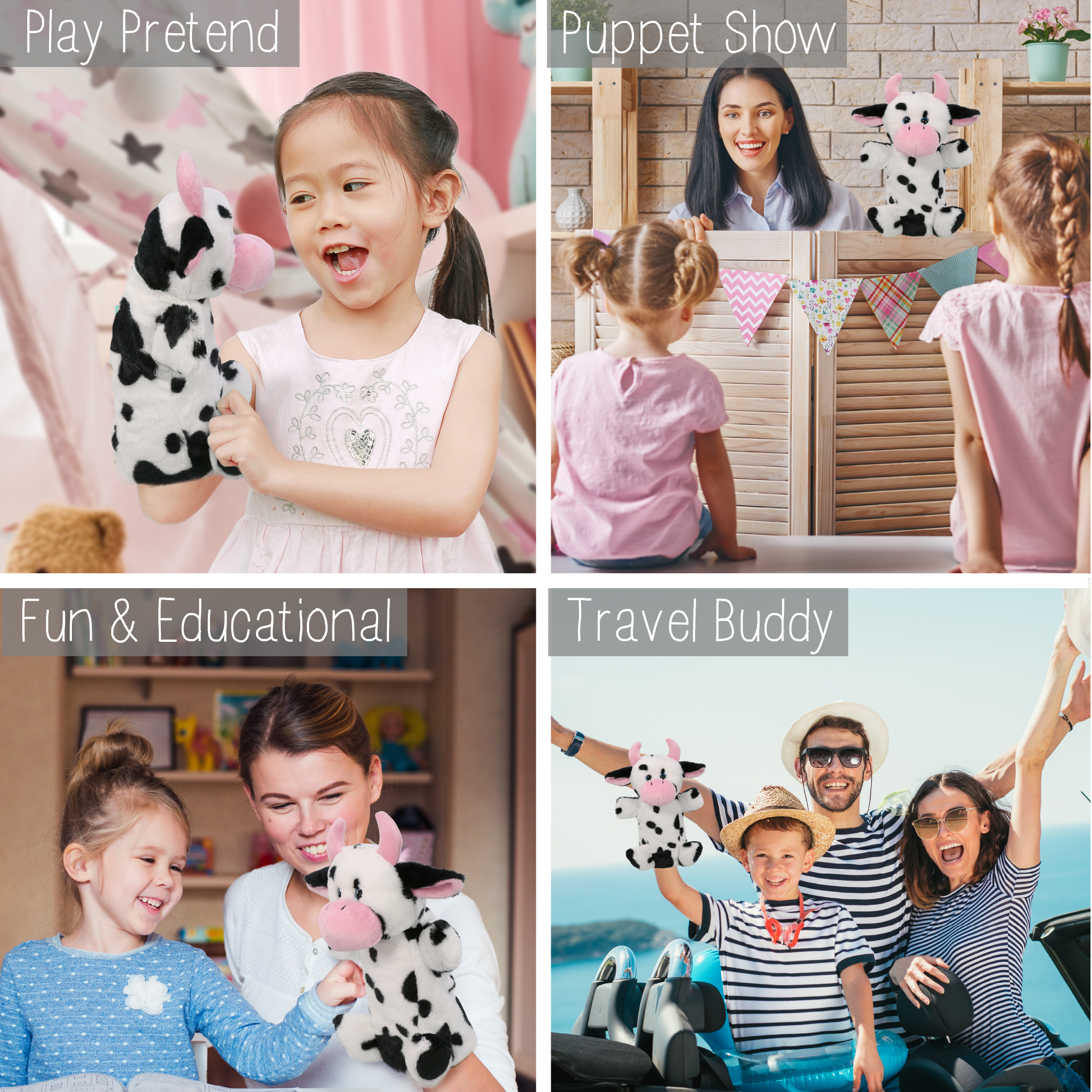 - Perfect Animal Hand Puppets for Kids – The friendly cow animal puppets for toddlers 1-3 and up makes a great companion for learning and pretend play. Hand puppet for kids help parents and teachers create fun learning environment for kids. Collectors of hand puppets for adults and kids and cow toys will surely love to add the cute cow plush to their collections, and they make great cow gifts for boys and girls who love puppet animals.