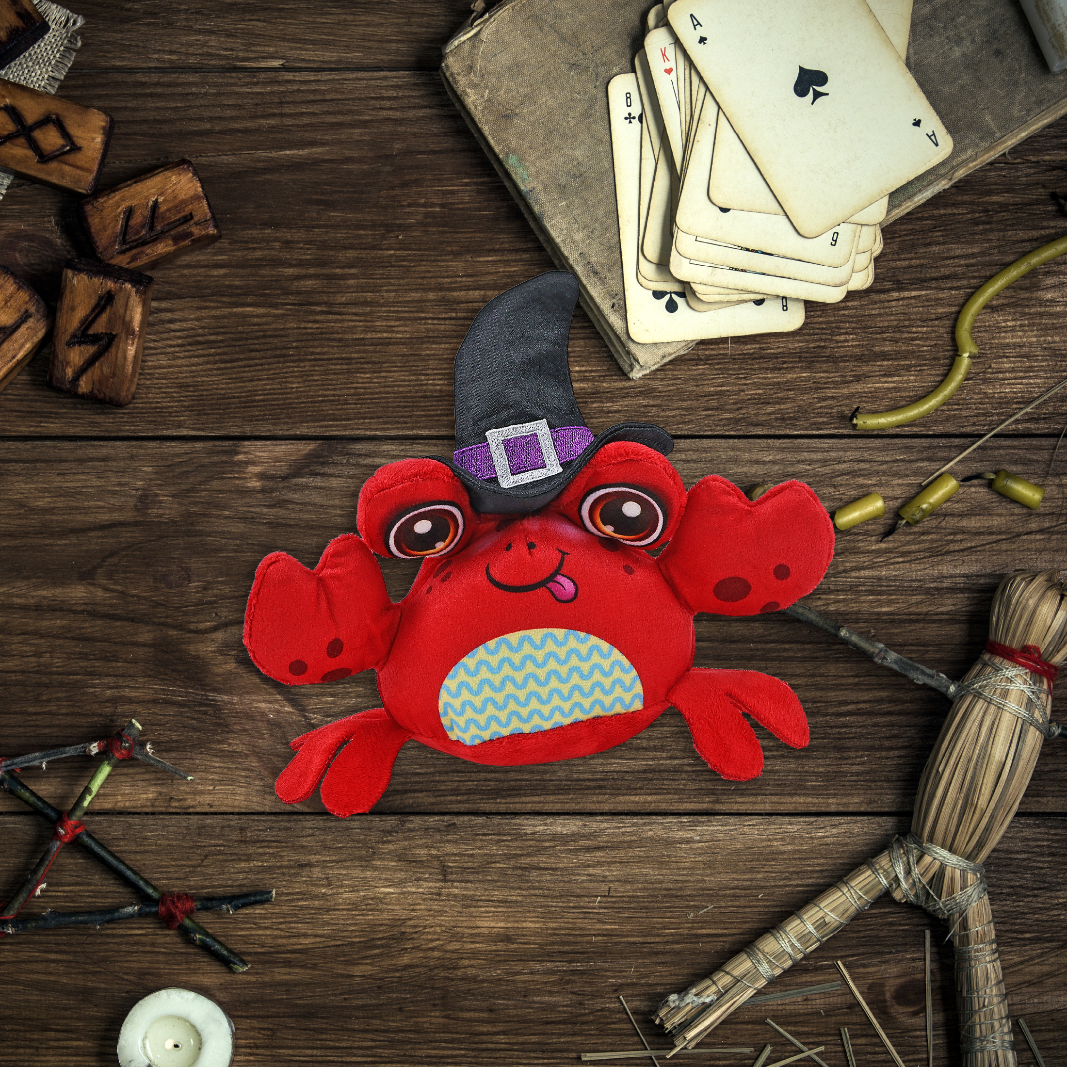 - Features a Teddy Bear Halloween Plush Wearing Witch Plush Doll Hat – This cute witch crab stuffed toy comes dressed in a pointy black witch hat decor with a silver buckle and purple band, completing the spooky Halloween teddy bear look. The crab plush toy witch costume hat is removable and fits snugly on the crab Halloween witch doll.
