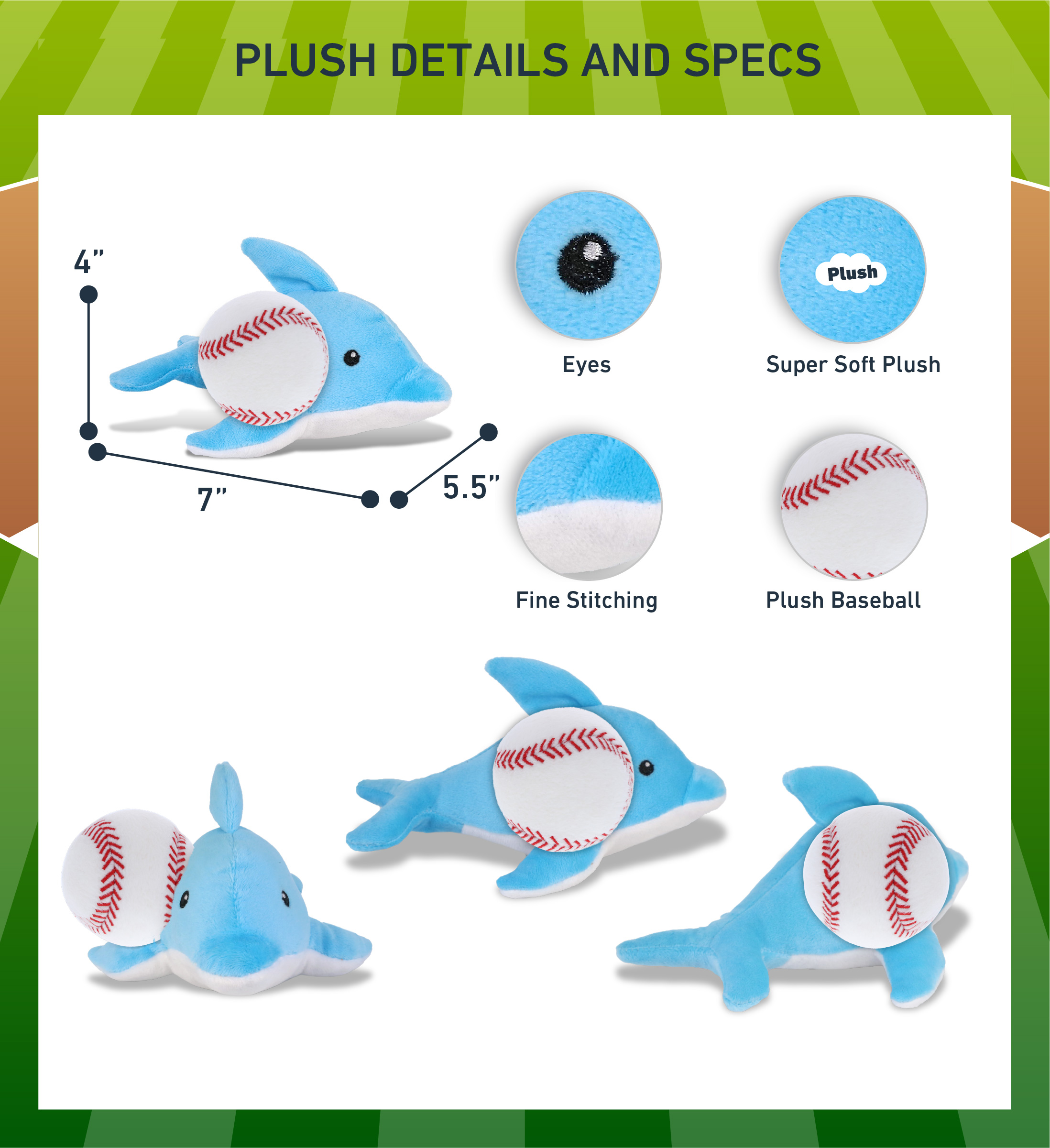 - INCLUDED WITH THE PURCHASE OF DOLPHIN PLUSH WITH BASEBALL BALL – Includes 1 DolliBu Dolphin Super Soft Stuffed Animal with a baseball plush, decorated with realistic features of a dolphin. The baseball sports ball is attached to the dolphin body, making it perfect for cuddles. The dolphin plush toy features realistic details. The dolphin eyes make the critter so charming. The cute plush toy buddy measures 7Lx5.5Wx4H inches.