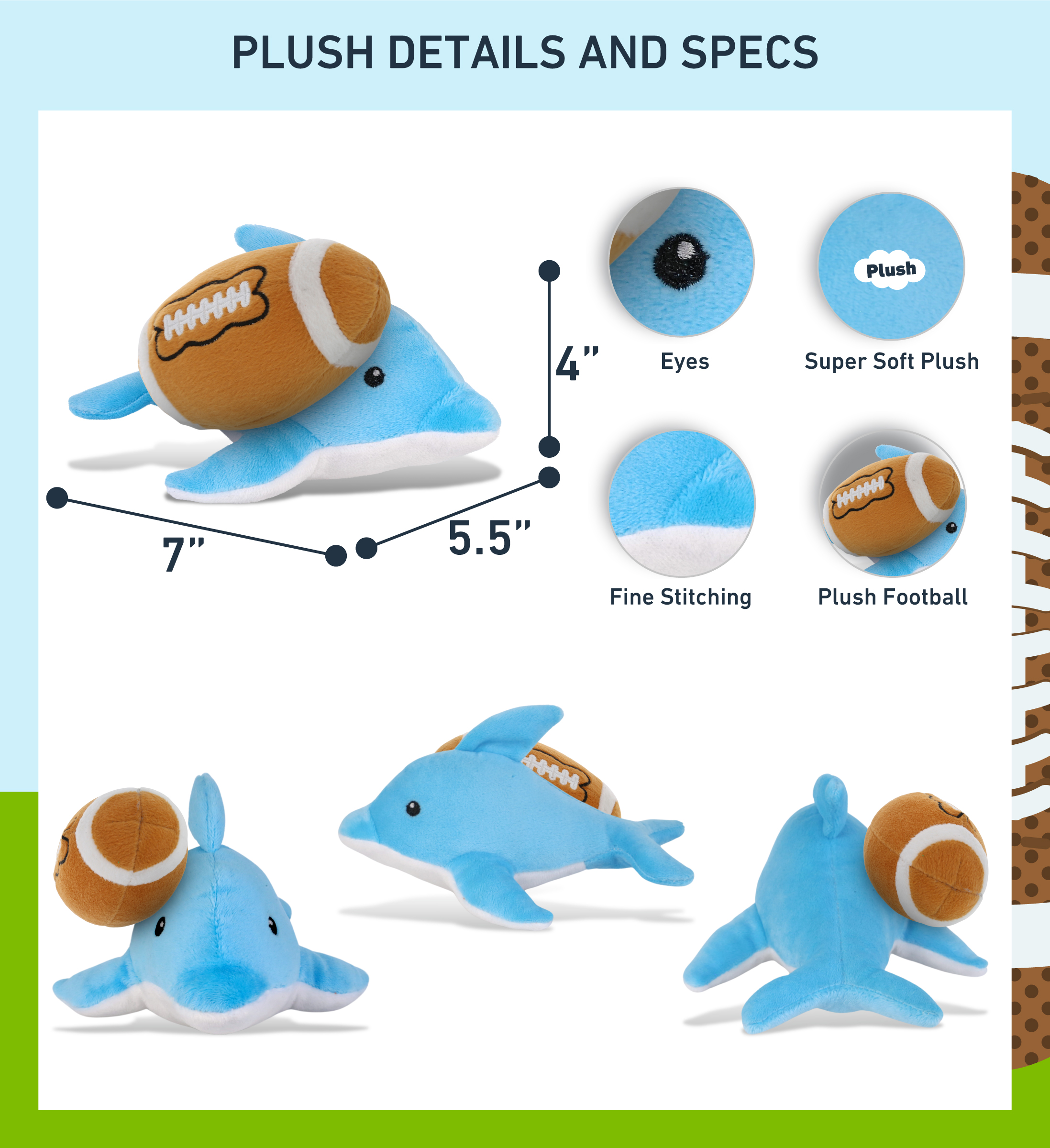 - INCLUDED WITH THE PURCHASE OF ADORABLE CUTE DOLPHIN PLUSH – Includes 1 DolliBu Dolphin Super Soft Plush with a football plush, decorated with realistic features of a cute plush baby. The dolphins body with a sports gift ball plush makes the plush perfect for cuddles. The plush toy features details like its characteristic fins. The dolphin’s eyes make the critter so charming. The cute plush toy buddy measures 7Lx5.5Wx4H inches.