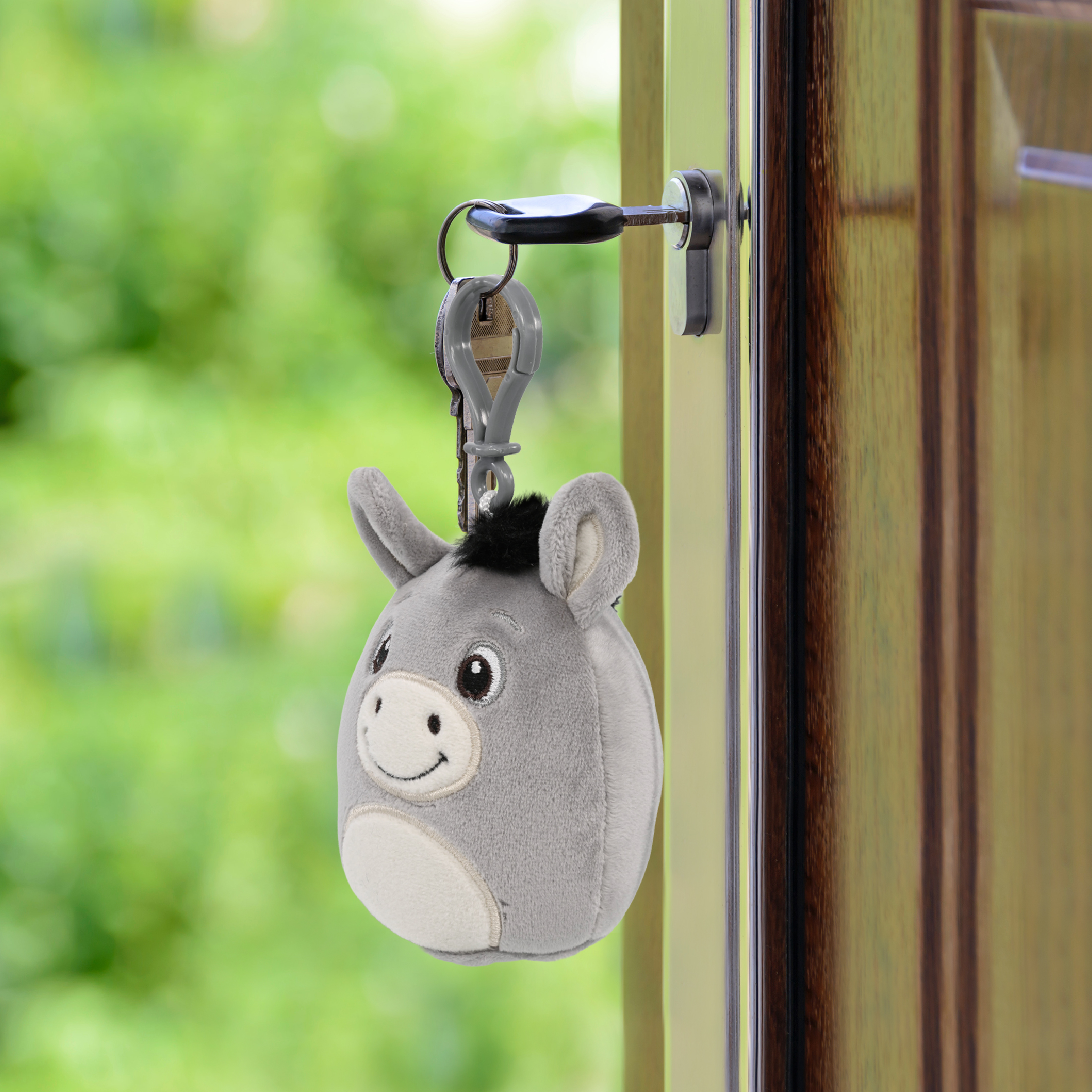 - The Donkey Keychain Plush Comes with Unique Design You Will Love – Accessorize your handbag, purse, backpack and more with cute donkey backpack keychains for girls and boys. The bear plush key chain features a soft squishie plush keychain. The donkey plush keychain features cute embroidered details and a bag clip that makes it safe and easy to hang anywhere and fits many keys. Keychain can be used as a squishable sensory toy.